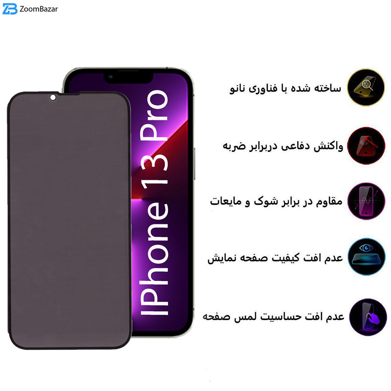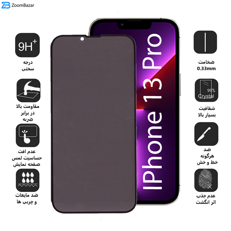 محافظ صفحه نمایش حریم شخصی بوف مدل Pr33-G مناسب برای گوشی موبایل اپل Iphone 13 Pro به همراه بیمه 6 ماهه LCD