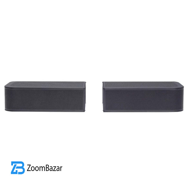 این ساندبار JBL با بدنه خاکستری مات خود از پلاستیک پلی کربنات با کیفیت ساخته شده است و ظاهر شیک و مدرنی را به خانه شما می دهد. بار 1300 شامل یک ساندبار، دو اسپیکر قابل جدا شدن و یک ساب ووفر بی سیم است. ساندبار اصلی با عرض 1 متری خود به راحتی در زیر تلویزیون شما قرار می گیرد. روی آن یک پنل LED دیده می شود که به شما امکان تغییر تنظیمات موسیقی را می دهد. اگر اسپیکر های بی سیم را برای شارژ در کنار ساندبار قرار دهید عرض آن به 1.35 متر افزایش پیدا می کند. ساب ووفر بی سیم آن را نیز با ابعاد 30x30x55 می توانید در کنار میز تلویزیون خود بگذارید و از قدرت شگفت انگیز آن لذت ببرید. همچنین شما می توانید ساب ووفر را در جایی دور از دیوار قرار دهید تا از قدرت حداکثری آن بهره ببرید. به علاوه حین تماشای فیلم با قرار دادن دو اسپیکر بی سیم کنار ساندبار در پشت سرتان جلوه های صوتی فراگیر تکمیل می شوند. حتی زمانی که فیلم تماشا نمی کنید می توانید از آنها به عنوان اسپیکر بی سیم استفاده کنید و برای مثال یکی از آن ها را در آشپزخانه قرار دهید تا هنگام آشپزی یا انجام کارهای روزمره از گوش دادن به آهنگ با کیفیت بالا لذت ببرید. یک سوکت USB-C در هر اسپیکر وجود دارد که به شما اجازه می دهد به وسیله آن به طور نامحدود از اسپیکرها استفاده کنید و دیگر نگرانی از بابت شارژ کردن آنها نداشته باشید. همچنین شما می توانید از اسپیکرها به صورت جداگانه و مستقل نیز استفاده کنید و با قرار دادن آن در کنار تختتان آهنگ ها و پادکست های قبل خواب خود را با کیفیت بالاتری بشنوید.