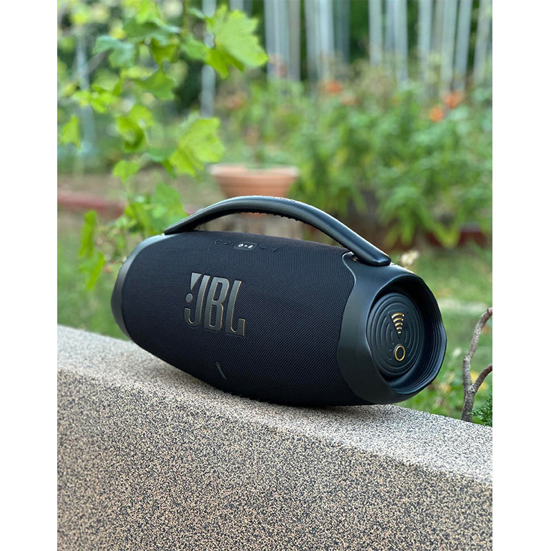 اسپیکرهای قابل حمل، نسل جدیدی از اسپیکرها هستند که به دلیل قابل حمل بودن و امکان استفاده در هر موقعیتی، حسابی در بین کاربران محبوب واقع شده اند. بیشتر کمپانیها در تولید اسپیکرهای پرتابل، به یک وجه آن توجه کرده و گاهی کیفیت صدا را فدای بخشها دیگر نظیر باتری میکنند. در این میان کمپانی جی بی ال یکی از بهترین کمپانیهایی است که به عرضه محصولات باکیفیت شهرت داشته و پکیج کاملی از قابلیتها را ارائه میدهد. اسپیکر قابل حمل و بلوتوثی JBL Boombox 3 WiFi، یکی از جدید و درجه یک ترین محصولات این کمپانی است که به نوعی نسخه به روز شدهJBL Boombox 3 به شمار میرود. اسپیکر پرتابل جیبیال بوم باکس 3 وای فای، نسبت به نسخه پیشین خود در چند زمینه ارتقا یافته است. برای مثال از کانکشن وای فای بهره برده و از صدای دالبی اتموس پشتیبانی میکند. پشتیبانی از چند برنامه دیگر و نرم افزار اختصاصی JBL ONE از دیگر تغییرات این نسخه از اسپیکر قابل حمل است.
