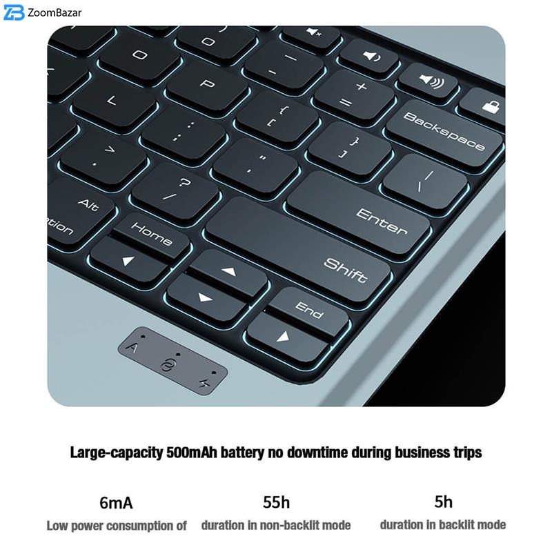 کیف کلاسوری نیلکین مدلBumper Go Keyboard یک کیف محافظ و مقاوم است که دارای یک کیبورد با کیفیت نیز میباشد که با استفاده از آن می توانید به کارهای روزمره بپردازید. تفاوت این مدل با Bumper معمولی دسته ی محکم بالای کیف است که حمل آن را آسان تر میکند. این کیف کلاسوری دور تا دور بدنه دستگاه را میپوشاند.این کیف دارای مقاومت بالای بوده و در برابر ضربه مقاوم است.البته به این معنی نبوده که در برابر ضربات شدید نیز مقاوم است.جنس این کاور ازTPUوPCساخته شده که دارای مقاومت بالایی می باشد.این کیف کلاسوری دارای محافظ دوربین بوده که به صورت کشویی عمل میکند.یکی از قابلیت های مفید در قاب تبلت ها داشتن استند است؛چون این دستگاه ها ابعاد بزرگی دارند و نگهداری از آنها روی استند بسیار راحت تر و کم خطر تر است.از همین رو کیف کلاسوری دارای یک استند تاشو است که استحکام کافی برای نگهداشتن و استفاده از تبلت را خواهد داشت.شما می توانید حالت های مختلفی برای قرار گرفتن تبلت انتخاب کنید.این محصول نیلکین دارای یک کیبورد یا صفحه کلید قابل جدا شدن می باشد.شما در صورت نیاز می توانید از این کیبورد استفاده کرده و یا آن را جدا کنید.کلیدهای این کیبورد به گونهای(قطرهای)طراحی شده که قالب انگشتان شما باشد.این کلیدها بسیار بی صدا بوده و وزن پایینی دارد؛بعلاوه کار با آن شما را خسته نمیکند.کلیدهای کیبورد کیف کلاسوری بسیار حساس بوده و با کمترین فشار عمل خواهد کرد.بر روی این کیبورد یک پد لمسی وجود دارد که می توانید از آن به جای موس استفاده کنید.شما می توانید از طریق بلوتوث این کیبورد را به دستگاه خود متصل کنید.نرخ نمونه برداری لمسی پد لمسی آن120هرتز بوده که بسیار حساس بوده و از چند لمس همزمان پشتیبانی می کند.این کیبورد دارای یک باتری150میلی آمپر ساعتی بوده که برای پر شدن آن نیاز به حدود1.5تا2ساعت شارژ بوده و با پر بودن شارژ تا30روز می توانید از آن استفاده کنید؛البته این عدد برای روزی2ساعت کار با کیبورد است که متناسب با استفاده شما متغییر خواهد شد.قابل ذکر است نسخه بلوتوث این کیبورد3.0می باشد و محدوده عملکرد آن حدود10متر است.در قسمت جلویی این قاب، جای برای قرار گرفتن قلم هوشمند اپل تعبیه شده که می توانید قلم خود را در این قسمت ها قرار دهید.