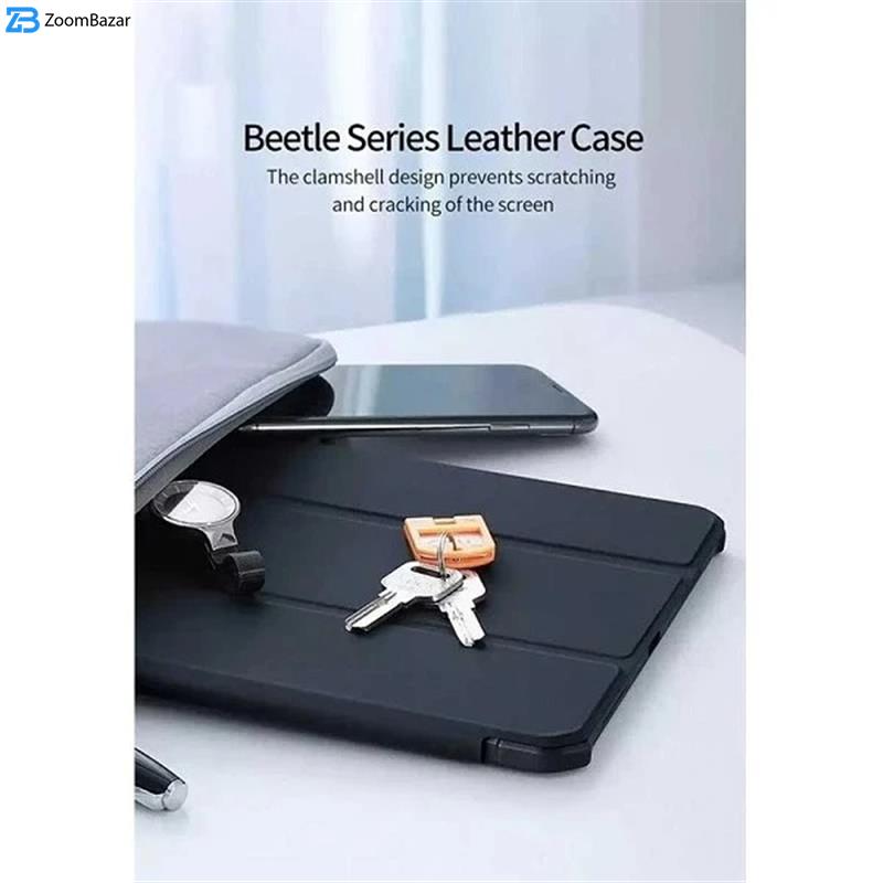 طراح بزرگی که آیپدها دارند باعث شده است که همیشه احتمال آسیب به آنها وجود داشته باشد.بنابراین بهتر است برای مراقبت از تبلت خود یک کیف زیبا تهیه کنید.با خرید کیف کلاسوری اپیکوی مدل Xundd Dream یک کیف شیک برای آیپد خود خواهید داشت.این کاور بسیار باکیفیت است و از مواد اولیهی PC و TPU درجه یک ساخته شده است.طراحی زیبایی که این کاور دارد چشمها را به خود خیره میکند.از جنس TPU، چرم PU و پلاستیک سخت ساخته شده است و امنیت بالایی را به تبلت شما اضافه میکند.برای مقاومت بیشتر از دولایه محافظتی استفاده شده است.قسمت شفاف پشتی از جنس PC محکم و ضد خش است و به شکلی شفاف نمایانگر آیپد شما خواهد بود. برای لبههای قاب از TPU منعطف استفاده شده تا در برابر شوک و ضربه مقاوم باشد. احتمالا برای شما هم اتفاق افتاده است که به طور ناگهانی شاهد سقوط تبلت یا گوشی خود باشید.اگر دقت کرده باشید آسیب بیشتر از همه گوشهها را تهدید میکند.برای حل این مشکل به هر گوشه قاب در چهارگوشه بامپر اضافه شده. پس باوجود این کیف اگر آیپد از دستتان بیافتد آسیبی نمیبیند. اگر زیاد با آیپد کار میکنید برای راحتی لازم است بتوانید آن را در زوایای مختلف قرار دهید و برای امور طراحی و تماشای فیلم یا مطالعه از آن استفاده کیند. روی روکش کیف دو برش قرار دارد، در کیف کلاسوری خود را میتوانید به شکل یک پایه استفاده کنید و آن را در برش های قرار داده شده بگذارید تا در دو زاویه دلخواه بتوانید از آیپد خود برای امور مختلف استفاده کنید. با اینکه اکثر کیفها نسبت به قاب ضخامت بیشتری دارند اما ضخامت این کیف به گونهای است که به هیچ وجه شکل و فرم تبلت شما را به هم نمیریزد و همچنان خوشاستایل باقی میماند. برای این کار به یک استند نیاز دارید. بهکمک این بامپر میتوانید تبلتتان را در حالت یا افقی در هر زاویهای که میخواهید تنظیم کنید. اپیکوی فکری برای قلم هم کرده. اگر جایی میروید و فقط میخواهیدآیپدتان را با خود ببرید لازم نیست نگران قلم باشید. کنار تبلت جایی برای قلم هم در نظر گرفته شده است. برشهای این کیف کاملا دقیقاند.جای تمام کلیدهای فیزیکی،دوربین،بلندگو و دیگر چیزها بادقت در نظر گرفته شده. بنابراین در استفاده از آن به مشکل برنمیخورید.این کاور مانع از ایجاد خط و خراش بر روی دوربین آیپد شما میشود.