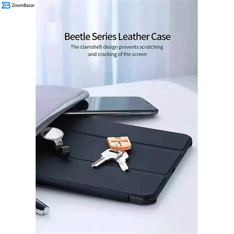طراح بزرگی که تبلت دارند باعث شده است که همیشه احتمال آسیب به آنها وجود داشته باشد. بنابراین بهتر است برای مراقبت از تبلت خود یک کیف زیبا تهیه کنید.با خرید کیف کلاسوری اپیکوی مدل Smart Case یک کیف شیک برای تبلت خود خواهید داشت.این کاور بسیار باکیفیت است و از مواد اولیهی چرم مصنوعی و TPU درجه یک ساخته شده است.طراحی زیبایی که این کاور دارد چشمها را به خود خیره میکند.از جنس TPU، چرم PU و پلاستیک سخت ساخته شده است و امنیت بالایی را به تبلت شما اضافه میکند.برای مقاومت بیشتر از دولایه محافظتی استفاده شده است.قسمت پشتی از جنس چرم مصنوعی محکم و ضد خش است و به شکلی مات نمایانگر تبلت شما خواهد بود. برای لبههای قاب از TPU منعطف استفاده شده تا در برابر شوک و ضربه مقاوم باشد. احتمالا برای شما هم اتفاق افتاده است که به طور ناگهانی شاهد سقوط تبلت یا گوشی خود باشید.اگر دقت کرده باشید آسیب بیشتر از همه گوشهها را تهدید میکند.برای حل این مشکل به هر گوشه قاب در چهارگوشه بامپر اضافه شده. پس باوجود این کیف اگر تبلت از دستتان بیافتد آسیبی نمیبیند. اگر زیاد با تبلت کار میکنید برای راحتی لازم است بتوانید آن را در زوایای مختلف قرار دهید و برای امور طراحی و تماشای فیلم یا مطالعه از آن استفاده کیند. روی روکش کیف دو برش قرار دارد، در کیف کلاسوری خود را میتوانید به شکل یک پایه استفاده کنید و آن را در برش های قرار داده شده بگذارید تا در دو زاویه دلخواه بتوانید از تبلت خود برای امور مختلف استفاده کنید. با اینکه اکثر کیفها نسبت به قاب ضخامت بیشتری دارند اما ضخامت این کیف به گونهای است که به هیچ وجه شکل و فرم تبلت شما را به هم نمیریزد و همچنان خوشاستایل باقی میماند. برای این کار به یک استند نیاز دارید. بهکمک این بامپر میتوانید تبلتتان را در حالت یا افقی در هر زاویهای که میخواهید تنظیم کنید. اپیکوی فکری برای قلم هم کرده. اگر جایی میروید و فقط میخواهید تبلتتان را با خود ببرید لازم نیست نگران قلم باشید. کنار تبلت جایی برای قلم هم در نظر گرفته شده است. برشهای این کیف کاملا دقیقاند.جای تمام کلیدهای فیزیکی،دوربین،بلندگو و دیگر چیزها بادقت در نظر گرفته شده. بنابراین در استفاده از آن به مشکل برنمیخورید.این کاور مانع از ایجاد خط و خراش بر روی دوربین تبلت شما میشود.