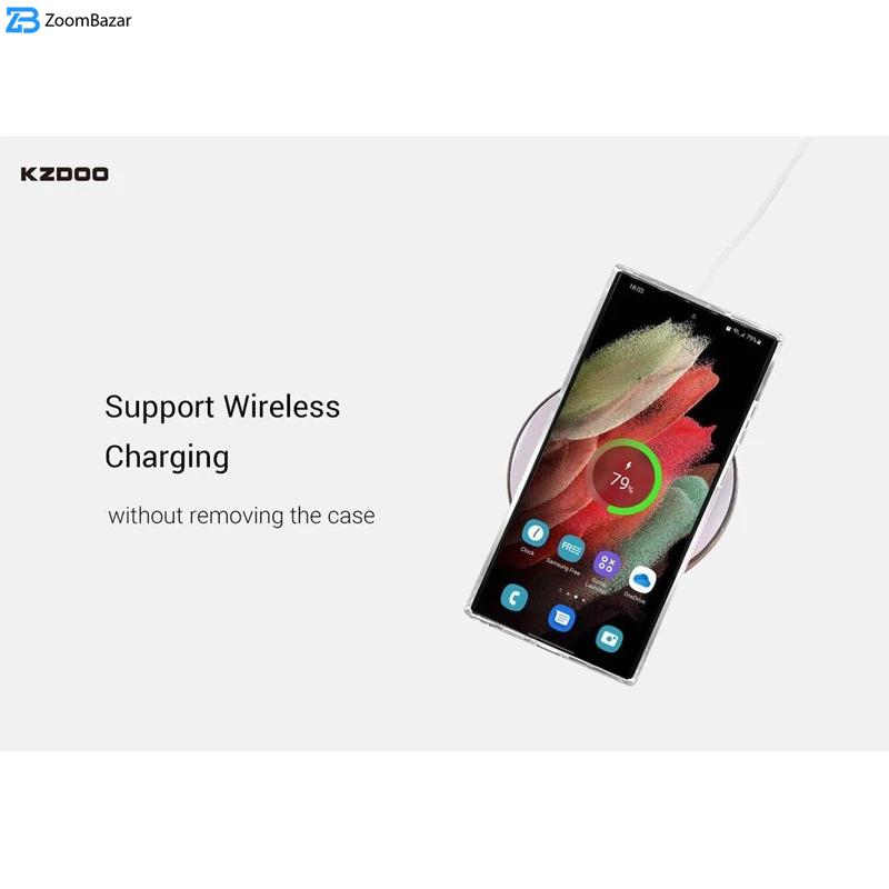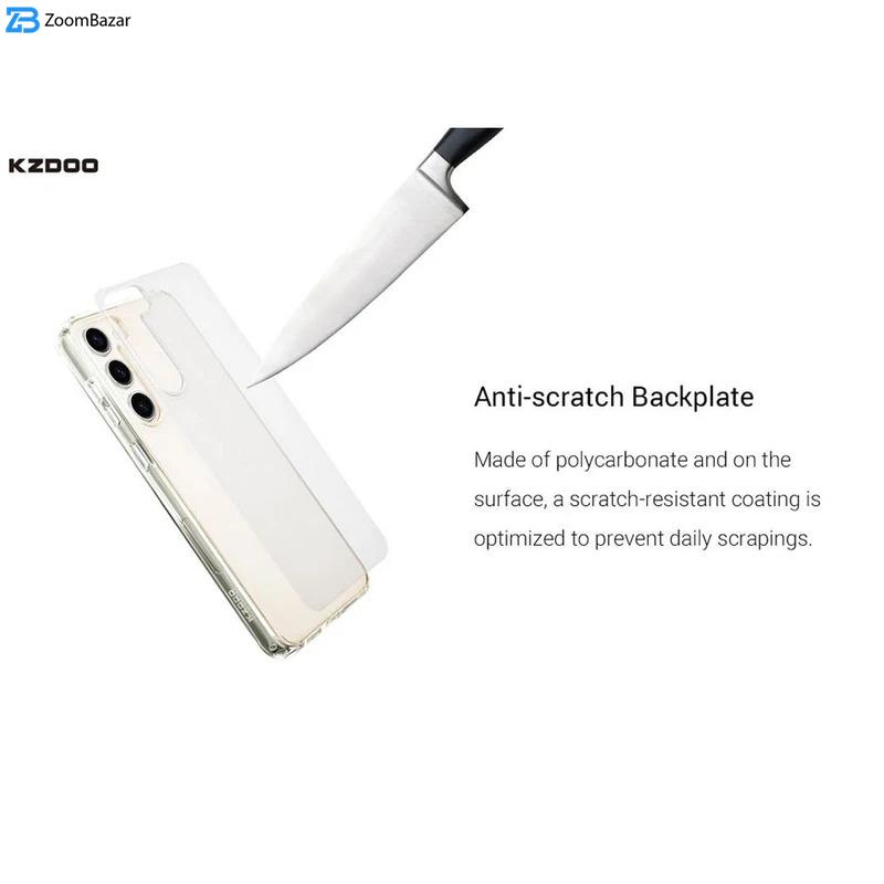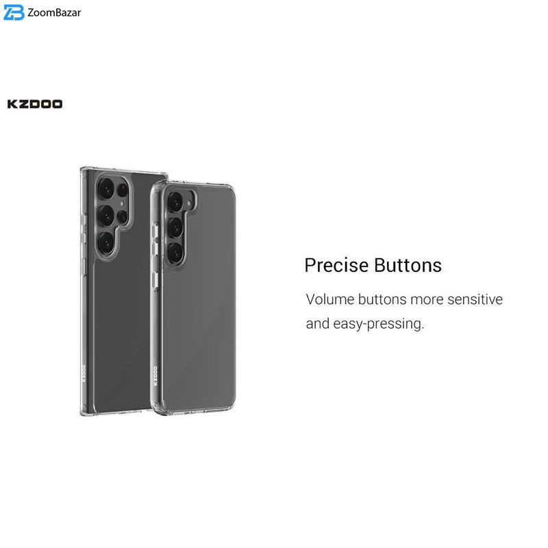 شاید شما هم از جمله کسانی باشید که دوست ندارند ظاهر زیبای گوشی S24 Ultra خود را توسط قاب بپوشانند. در این صورت این قاب را به شما پیشنهاد می‌دهیم. این قاب از نوع شفاف و بی رنگ است و از کیفیت بالایی در متریال و ساخت بهره می‌برد. کاور کی-زد دوو مدل Guardian بر خلاف دیگر قاب‌های شفاف ژله‌ای به سادگی زرد نمی‌شود و تا مدت زیادی می‌توانید از آن لذت ببرید. مقاومت بالا و مناسبی در برابر هرگونه آسیب و خط و خش دارد و با خیال راحت‌تری می‌توانید از گوشی خود لذت ببرید.کاملا شفاف و بی رنگ است. نه تنها تغییری در ظاهر و استایل گوشی ایجاد نمی‌کند، بلکه رنگ آن را هم اصلا تغییر نمی دهد و می‌توانید از اصالت گوشی زیبای خود لذت ببرید.پشت این قاب از پلی کربنات ساخته شده که جنسی نسبتا سخت دارد. در نتیجه به خوبی در برابر خط و خش مقاومت می‌کند و به راحتی آسیب نخواهد دید.استفاده از پلی کربنات برای قاب یک مزیت مهم دیگر هم دارد و آن این است که در اثر گذشت زمان زرد و کدر نمی‌شود. مشکلی که معمولا برای قاب‌های ژله‌ای شفاف پیش می‌آید و زیبایی آن را از بین می‌برد.از مواد و متریال‌های باکیفیت در طراحی و ساخت این قاب استفاده شده است. در نتیجه دوام و کیفیت بالایی دارد و می‌توانید مدت‌های طولانی بدون مشکل از این قاب استفاده کنید.دور تا دور قاب نرم و منعطف است. خیلی راحت می‌توانید آن را روی گوشی نصب کنید و یا بردارید. به خوبی دور گوشی فیکس می‌شود و شل یا لق نیست.کاور کی-زد دوو مدل Guardian طراحی ظریف و باریکی دارد. به همین دلیل هم گوشی شما را حجیم و سنگین نمی‌کند و حضور آن را روی گوشی حس نمی‌کنید. خیلی خوش دست است و به راحتی می‌توانید گوشی را در دست کنترل کنید.کاملا متناسب با ابعاد گوشی طراحی شده است. لبه‌ها دقیقا با لبه‌های گوشی هماهنگند.جای دوربین و جای دکمه‌ها کاملا مشخص است و برای شارژ کردن یا وصل کردن هندزفری به جک هم مشکلی ندارید.اگر به قاب دقت کنید می‌بینید که گوشه‌های آن شیار دار و تقویت شده است. بدنه‌ی گوشی معمولا از همین قسمت‌ها آسیب می‌بیند، این ویژگی سبب شده گوشه‌ها مقاومت بالاتری در برابر ضربه داشته باشند و به راحتی دچار مشکل نشوند.ضخامت کمی دارد. مزاحمتی برای کار کردن شما با گوشی ایجاد نمی‌کند و مشکلی هم با قرار دادن گوشی داخل جیب‌تان نخواهید داشت.این قاب از شارژ بیسیم نیز پشتیبانی میکند .
