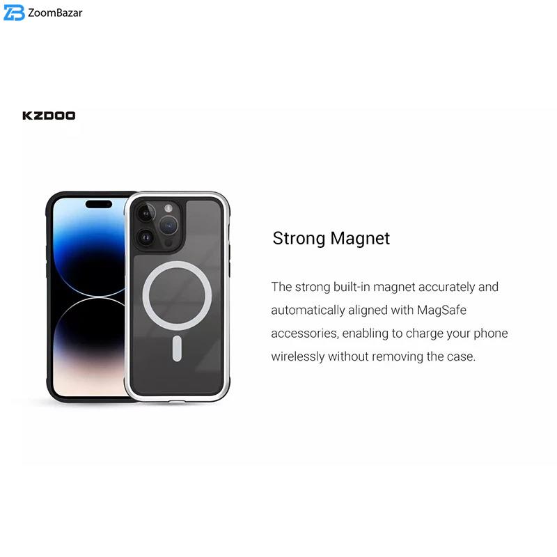 یک انتخاب عالی که زیبایی اصیل گوشی و محافظت بالا را با هم ترکیب می‌کند. این قاب برای کسانی که دوست ندارند با گذاشتن قاب رنگ گوشی را بپوشانند ایده‌آل است زیرا پشت آن کاملا شفاف است.با خرید کاور کی-زد دوو مدل Mag Ares می‌توانید گوشی خود را به ساده‌ترین و راحت‌ترین روش شارژ کنید،زیرا خاصیت مغناطیسی دارد و شارژر وایرلس به آن می‌چسبد.این قاب زیبایی گوشی شما را نخواهد پوشاند. محافظت خیلی خوبی هم از گوشی شما به عمل می‌آورد و می‌توانید با آن تجربه‌ی لذت بخشی از کار با گوشی خود داشته باشید.مهم‌ترین ویژگی کاور کی-زد دوو مدل Mag Ares پشتیبانی آن از ‌Magsafe است که یعنی خاصیت آهنربایی دارد.بنابراین می‌توانید خیلی راحت شارژر بی سیم را به آن بچسبانید تا گوشی شروع به شارژ شدن کند.دیگر مجبور نیستید برای شارژ وایرلس قاب را دربیاورید.در عین حال نسبت به سایر قاب‌ ها برتری‌های بسیاری دارد: امنیت گوشی را تضمین می‌کند و جلوی هرگونه آسیبی را به بدنه‌ی حساس گوشی می‌گیرد.با خرید این قاب به بهترین نحو از گوشی خود مراقبت می‌کنید و در عین حال ظاهری فوق‌العاده هم به آن هدیه خواهید کرد.در قاب Mag Ares دور تا دور از آلیاژ آلومینیوم ماشینکاری شده استفاده شده است.این متریال درجه حافظتی این قاب را تا گرید نظامی بالا برده است.در حدی که حتی با سقوط از ارتفاعی در حدود سه متر هم می‌تواند گوشی را در امان نگه دارد.پشت قاب از جنس پلی کربنات شفاف است.در عین این که محکم است و از ایجاد خط و خش روی بدنه جلوگیری می‌کند،رنگ اصلی گوشی را نمی‌پوشاند و لوگوی آن را کاملا نمایان می‌کند.رنگ قسمت فلزی دور قاب دارای تنوع است و می‌توانید یکی از آن ها را انتخاب کنید.برای مثال می‌توانید رنگی را انتخاب کنید که با رنگ گوشی‌تان هماهنگی داشته باشد،در این صورت ظاهر بسیار زیبایی به آن خواهید داد.کاورMag Aresدور تا دور لنز دوربین را هم می‌پوشاند و با آن اختلاف سطحی در حدود 2 میلی متر ایجاد می‌کند.بنابراین جلوی ایجاد خط و خش و آسیب روی لنز را می‌گیرد.این اتفاق در مورد صفحه‌ی گوشی هم صادق است،یعنی در حدود 5 میلی متر برامدگی دارد که یک محافظت حدودی از نمایشگر به عمل می‌آورد.می‌توانید تا مدت‌های طولانی بدون هر مشکلی از این قاب استفاده کنید.دورتادور قاب و زیر قسمت فلزی از جنسی نرم ساخته شده است که ضربه را جذب می‌کند.