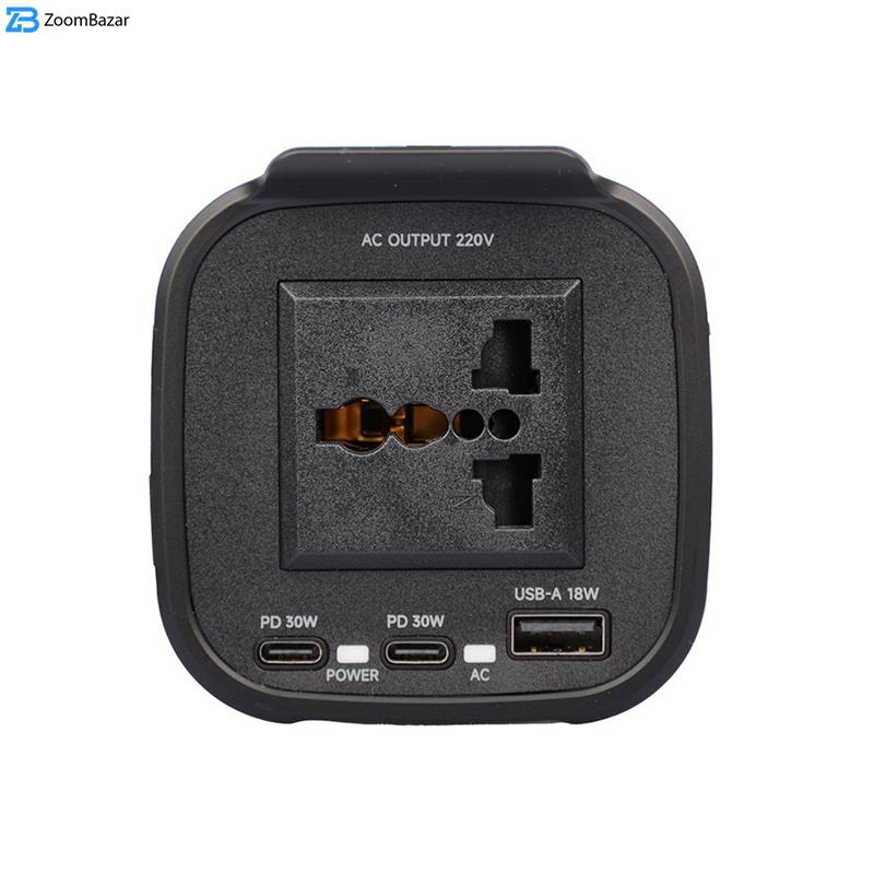 • سایر توضیحات دارای خروجی 220 ولت دارای خروجی USB-A : Quick Charge 3.0 دوخروجی TYPE-C: خروجی دوگانه USB-C PD با 30 وات PD دوشاخه برق متناوب: پریز برق 220 ولت انگلستان/ایالات متحده/اروپا طراحی فشرده و بادوام قابلیت شارژ سریع وزن : 342 گرم ابعاد :79×81×143 میلی‌متر