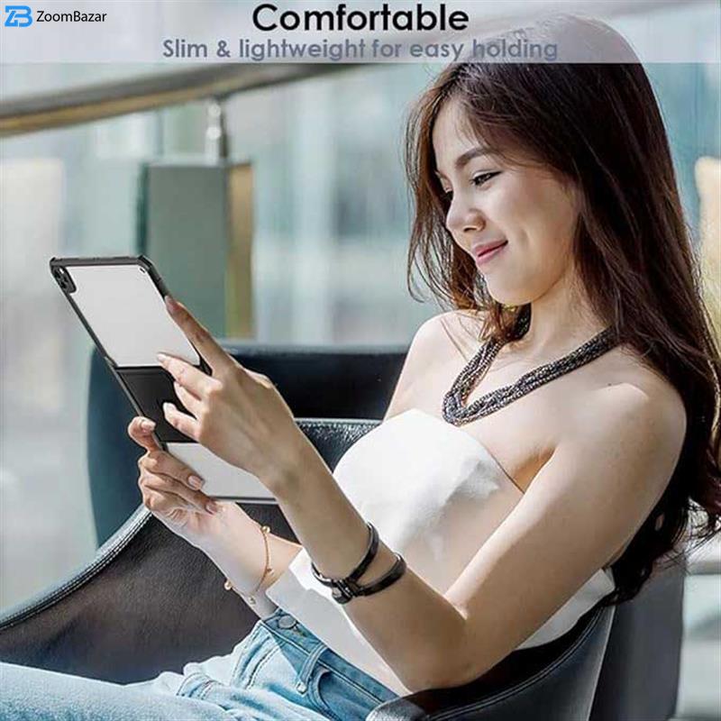 محافظت همیشگی از دستگاه های دیجیتال بخشی جدایی ناپذیر از نگه داری آنهاست که آیپد شما هم از این قاعده مستثناء نیست ، کاور ها باید ضمن حفظ زیبایی آیپد، از آن در برابر خطراتی مانند شوک و ضربه و به خصوص سقوط حفظ کنند. اگر کاوری باشد که طراحی منحصر به فرد آن ترکیبی از زیبایی کاور و خودِ آیپد را نمایان کند و همچنین محافظت ویژه ای از گوشه های آیپد کند قطعا بهترین انتخاب ما خواهد بود. کاور اپیکوی مدل Xundd Stand Holder همان کاوری است که تمامی این نیاز ها را برطرف میکند. در قسمت پشت قاب یک استند با کیفیت ساخته و طراحی شده است تا ضمن محافظت بیشتر بتوانید آن را باز کنید و روی میز کار یا برای طراحی و یا تماشای فیلم از آن استفاده کنید و در زاویه دلخواه آن را قرار دهید. این قاب ساخته شده از بهترین متریال اولیه یعنی PC کاملا شفاف و فشرده و در عین حال انعطاف پذیر است و همچنین TPU که به دلیل خواص نرمی و محافظت بالا در برابر ضربه این کاور را به یک کاور بی نظیر تبدیل میکند. همچنین خاصیت مقاومت بالا در برابر ضربه و خط و خش نیز به جذابیت آن می افزاید. در قسمت های کناری از TPU به شکلی عالی استفاده شده و برش های بسیار دقیق دیده میشود. این برش های دقیق دسترسی به درگاه ها را آسان کرده و قرار گیری دستگاه داخل کاور به بهترین شکل انجام میشود. انعطاف پذیری و نرمی آن ضربه را از دستگاه دور میکند و به آن انتقال نمیدهد بخصوص با توجه به وزن آیپد ها که سقوطشان با شدت بیشتری انجام میشود. همچنین راحتی را در هنگام در دست داشتن آیپد در ساعات طولانی استفاده هدیه میکند. نکته بسیار قابل توجه در خصوص کاور اپیکوی مدل Xundd Stand Holder وجود بامپر هایی است که در 4 گوشه کاور آیپد به شکل برآمده و نرم قرار داده شده اند تا گوشی همراه شما در برابر سقوط آسیب ناپذیر شود. لبه های برجسته کاور کمک میکنند حتی در صورت عدم وجود گلس روی صفحه نمایش از تماس آن با سطح صاف جلوگیری میشود. البته که به شکلی استاندارد طراحی شده و گلس شمارا در صورت استاندارد بودن آن بلند نمیکند. اپیکوی محافظت از لنز دوربین آیپد شما را فراموش نکرده است، پوششی کامل برای لنز دوربین در نظر گرفته شده است، لنز ها به درستی جای خود قرار میگیرند و لبه به شکلی دقیق 0.8 میلی متر بر آمده شده و حفاظت را از دستگاه شما را تکمیل میکنند.
