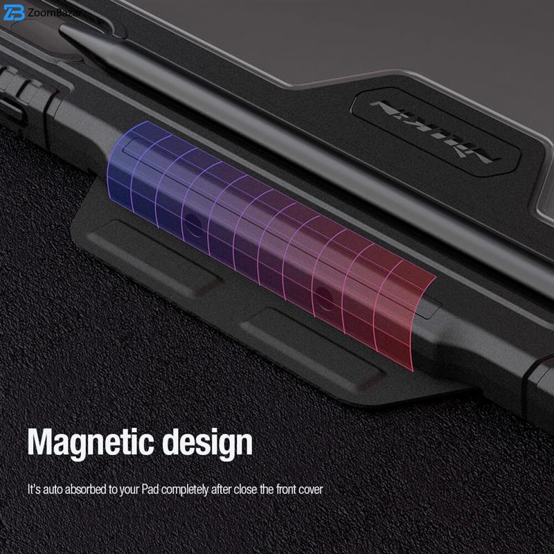کیف کلاسوری نیلکین مدل Bumper Pro Multi-angle folding style جدیدترین مدل bumper ها از شرکت معتبر نیلکین هست که در اواخر سال 2023 میلادی از آن رونمایی شد، ویژگی های جدیدی نسبت به نسخه های قبلی به آن اضافه شده که این مدل یعنی مدل Bumper Pro Multi-angle folding style را جذاب تر کرده است مانند هوشمند شدن این کیف کلاسوری ، یعنی زمانی که شما درب کیف را باز میکنید به صورت خودکار صفحه نمایش دستگاه شما روشن میشود و موقعی که میبندید صفحه نمایش خاموش میشود ، از دیگر ویژگی های نسل جدید این کیف میتوان به داشتن استند اشاره کرد که دیگر شما به راحتی و به دور از خستگی های بلند مدت بتوانید ساعت ها از دستگاه استفاده کنید و فیلم و سریال تماشا کنید محصولی از شرکت نیلکین است که محافظت از تبلت شما را بر عهده دارد.از ویژگی کیف کلاسوری نیلکین مدل Bumper Pro Multi-angle folding style محافظت از لنز دستگاه هوشمند شما میباشد که با وجود محافظ کشویی کیف در معرض خط و خش نخواهد بود. کیف کلاسوری نیلکین مدل Bumper Pro Multi-angle folding style از TPU و پلاستیک سخت ساخته شده است و به صورت سه بعدی محافظت میکند یعنی سرتاسر تبلت را محافظت مینماید و با ظاهری ظریف زیبایی خاصی به تبلت میبخشد. کیف کلاسوری نیلکین مدل Bumper Pro Multi-angle folding style از یک نوع پوشش ساخته شده که در برابر لغزش مقاوم است و تبلت شما را در برابر ضربه و خراش محافظت میکند.