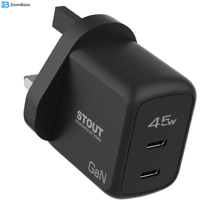 شارژر دیواری 45 وات پاوا مدل Stout Gan Travel Charger