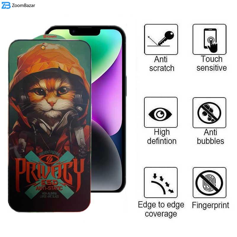 محافظ صفحه نمایش حریم شخصی اپیکوی مدل Privacy Hoodie Cat مناسب برای گوشی موبایل اپل iPhone 14 pro max/ 16 Plus /15 plus