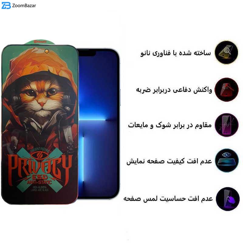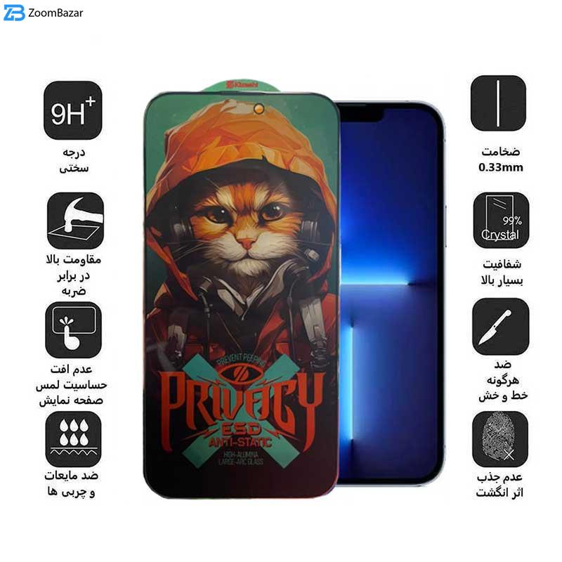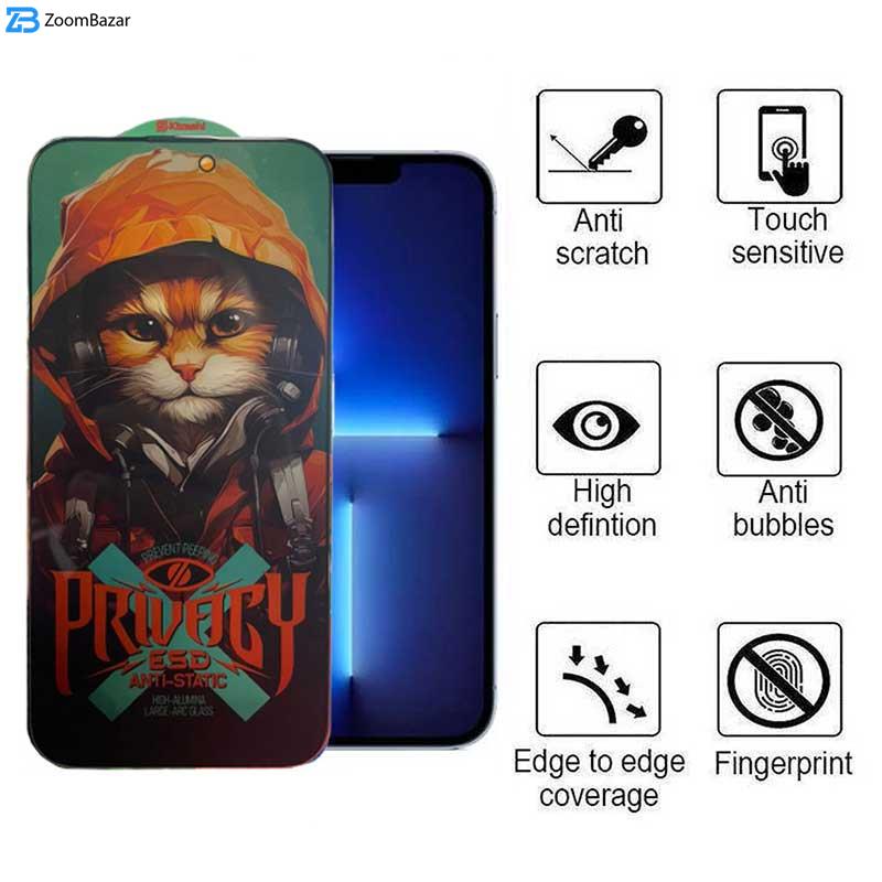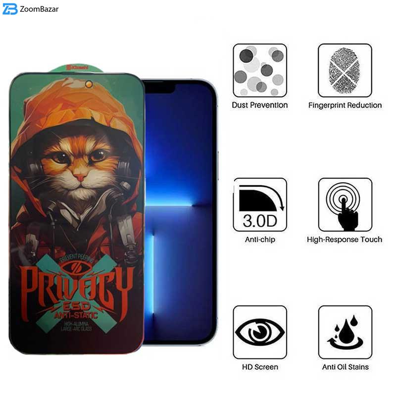 محافظ صفحه نمایش حریم شخصی اپیکوی مدل Privacy Hoodie Cat مناسب برای گوشی موبایل اپل iPhone 13 Pro Max /14 plus