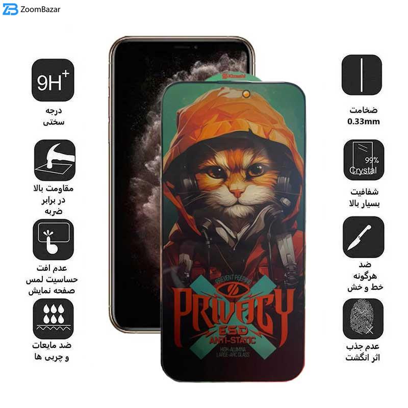محافظ صفحه نمایش حریم شخصی اپیکوی مدل Hoodie Cat مناسب برای گوشی موبایل اپل iPhone 11 Pro Max/ Xs Max