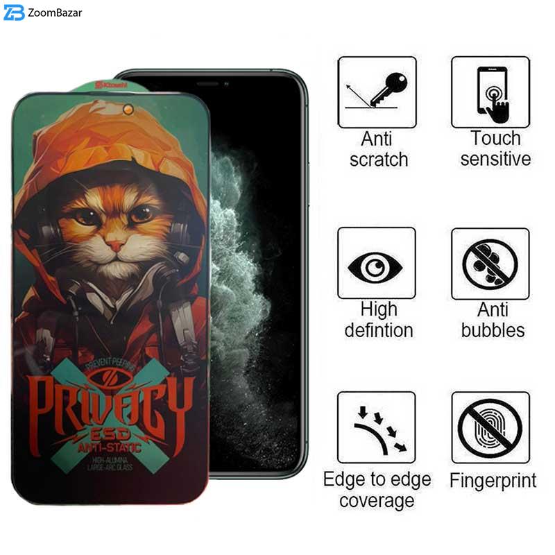 محافظ صفحه نمایش حریم شخصی اپیکوی مدل Hoodie Cat مناسب برای گوشی موبایل اپل iPhone 11 Pro/ Xs /X