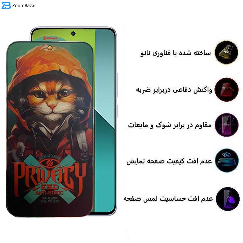محافظ صفحه نمایش حریم شخصی اپیکوی مدل Privacy Hoodie Cat مناسب برای گوشی موبایل شیائومی Redmi Note 13 Pro 4G/5G/ Note 13 4G/5G /Note 13R Pro