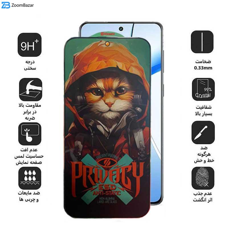 محافظ صفحه نمایش حریم شخصی اپیکوی مدل Privacy Hoodie Cat مناسب برای گوشی موبایل وان پلاس Nord CE4/ Nord CE3/ 10R/ 10T/ Ace Pro/ Ace/ 10R 150W
