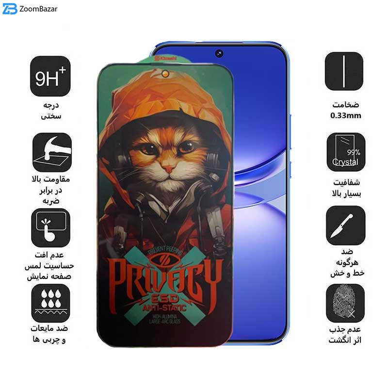 افرادی که به فکر رعایت حریم شخصی خود هستند و دوست ندارند اطلاعات شخصی آنها را کسی نبیند ، میتوانند از بهترین گزینه لوازم جانبی گوشیهای هوشمند یعنی گلس پرایوسی استفاده کنند و نه تنها نمایشگر خود را ایمن نگه دارند ،خصی خود در مکانهای عمومی هستید ؟ آیا از دیده شدن صفحه نمایش گوشی توسط افراد کناری خود رنچ میبرید؟ در این شرایط بهترین راه خرید محافظ صفحه نمایش حریم شخصی اپیکوی مدل Hoodie Cat است.محافظ صفحه نمایش حریم شخصی اپیکوی مدل Hoodie Cat علاوه بر این که از صفحه نمایش گوشی شما مراقبت میکند و امکان آسیب به آن را کاهش میدهد ، زاویه دید گوشی را محدود کرده و مانع از دیده شدن صفحه نمایش گوشی توسط اطرافیان میشود. رد و بدل کردن اطلاعات بانکی و مواردی از این قبیل برخی از کارهایی هستند که شاید در طول روز بارها آن را با گوشی هوشمند خود انجام دهید. از آنجایی که ایمن نگه داشتن این اطلاعات حائز اهمیت است ، خرید گلسی که بتواند حریم شخصی شما را حفظ کند را نباید فراموش کرد.محافظ صفحه نمایش حریم شخصی اپیکوی مدل Hoodie Cat از نظر ظاهر مشابه با گلسهای معمولی است. اما در این گلس از نوعی تکنولوژی استفاده شده است که با محدود کردن زاویه دید ، افرادی که در کنار شما قرار دارند نمیتوانند نمایشگر گوشی را ببیند. این محافظ صفحه نمایش حریم شخصی اپیکوی مدل Privacy مقاومت بالایی دارد.ضد خط و خش است.ضد ضربه است.اثر انگشت بر روی آن باقی نمیماند.نسبت به لمس حساس است؛بنابراین عملکرد گوشی را مختل نمیکند.اطلاعات شخصی و حساس شما را امن نگه میدارد.زاویه دید محدود دارد.استفاده از فناوری Privacy باعث شده است که از رو به رو یا به عبارتی زاویه 90 درجه بتوانید صفحه موبایل خود را ببینید؛در غیره این صورت صفحه نمایش گوشی به صورت سیاه و تاریک دیده میشود.به آسانی نصب میشود و هیچ گونه حبابی زیر آن ایجاد نمیشود.محافظ صفحه نمایش حریم شخصی اپیکوی مدل Hoodie Cat دقیق است و محل قرار گرفتن دوربین سلفی به خوبی مشخص است.تمام چسب بودن این محافظ صفحه نمایش حریم شخصی اپیکوی مدل Privacy باعث شده است تا شما بتوانید به راحتی گلس را روی گوشی نصب کنید.این گلس یک انتخاب خوب برای کسانی است که نگران دیده شدن اطلاعات خود هستند.