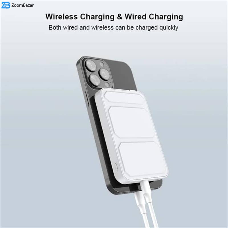 - مشخصات فنی Type-C Output : ۵V/۳A ۹V/۲.۳A ۱۲V/۱.۶۷A (Max ۲۰W) Type-C Input : ۵V/۳A ۹V/۲.۳A ۱۲V/۱.۶۷A (Max ۲۰W) Wireless Output : ۲۰W Output Interface : USB-Type C Input Interface : USB Type C Suitable Magnetic Sunction Sheet For Shell Selection Firm and Not Falling Off ، Automatic Absortion Free Type-C to Type-C Cable Weight: ۱۸۸ g