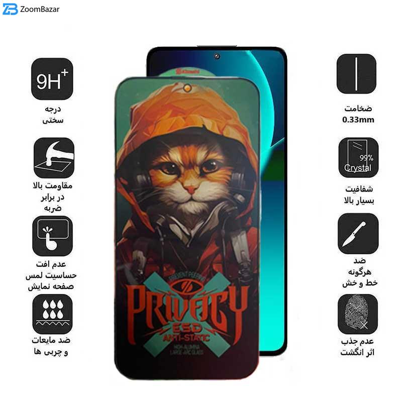 محافظ صفحه نمایش حریم شخصی اپیکوی مدل Privacy Hoodie Cat مناسب برای گوشی موبایل شیائومی 13T Pro / 13T / 12T Pro / 11T Pro / 11T /10T Lite 5g