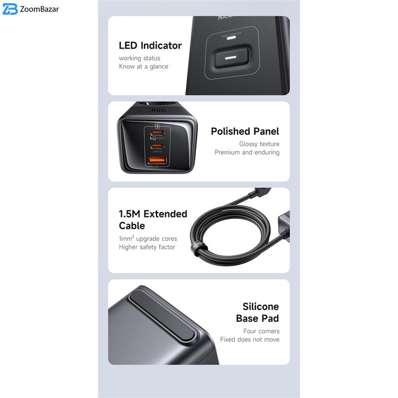 - امکانات چندراهی برق دکمه روشن و خاموش، شارژ سریع، نشانگر LED