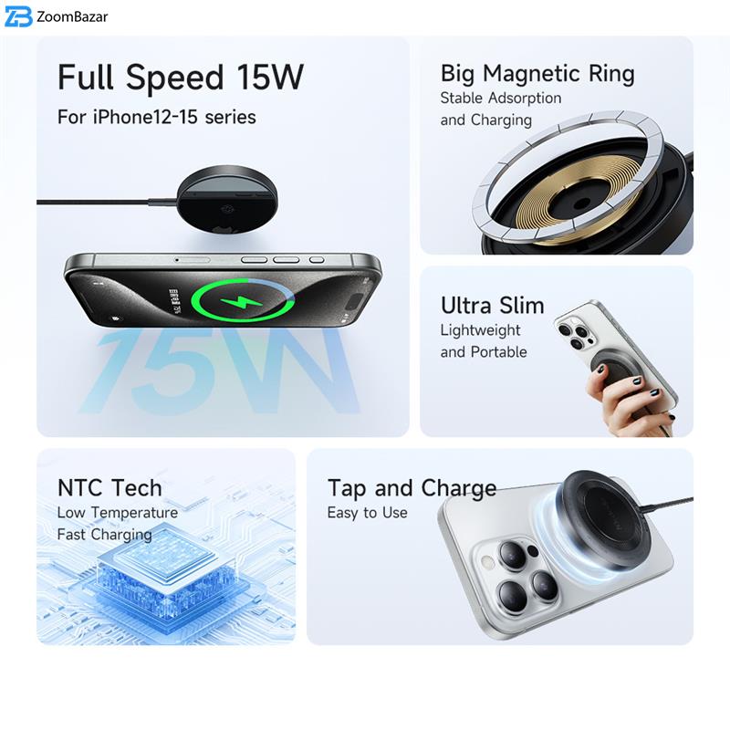 شارژر مک دودو CH-549 با توان خروجی 15 وات از شارژ سریع پشتیبانی میکند، بهطوری که در کمترین زمان ممکن میتوانید دستگاههای خود را بهطور کامل شارژ کنید. اما ویژگی خاص این شارژر، سیستم مغناطیسی قوی آن است که باعث میشود دستگاه شما بهصورت ایمن و محکم روی شارژر قرار گیرد و از حرکت یا افتادن جلوگیری شود.