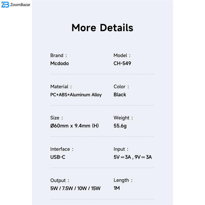 شارژر بیسیم مک دودو مدل CH-549 یک انتخاب ایدهآل برای کسانی است که به دنبال یک راهحل ساده و کارآمد برای شارژ دستگاههای خود هستند. این شارژر نه تنها عملکرد فوقالعادهای دارد، بلکه با طراحی زیبا و فوقالعاده نازک خود، هر کاربری را مجذوب میکند. اگر به دنبال یک شارژر مدرن و قدرتمند هستید که همزمان زیبا و جمعوجور باشد، مک دودو CH-549 دقیقاً همان چیزی است که به آن نیاز دارید.