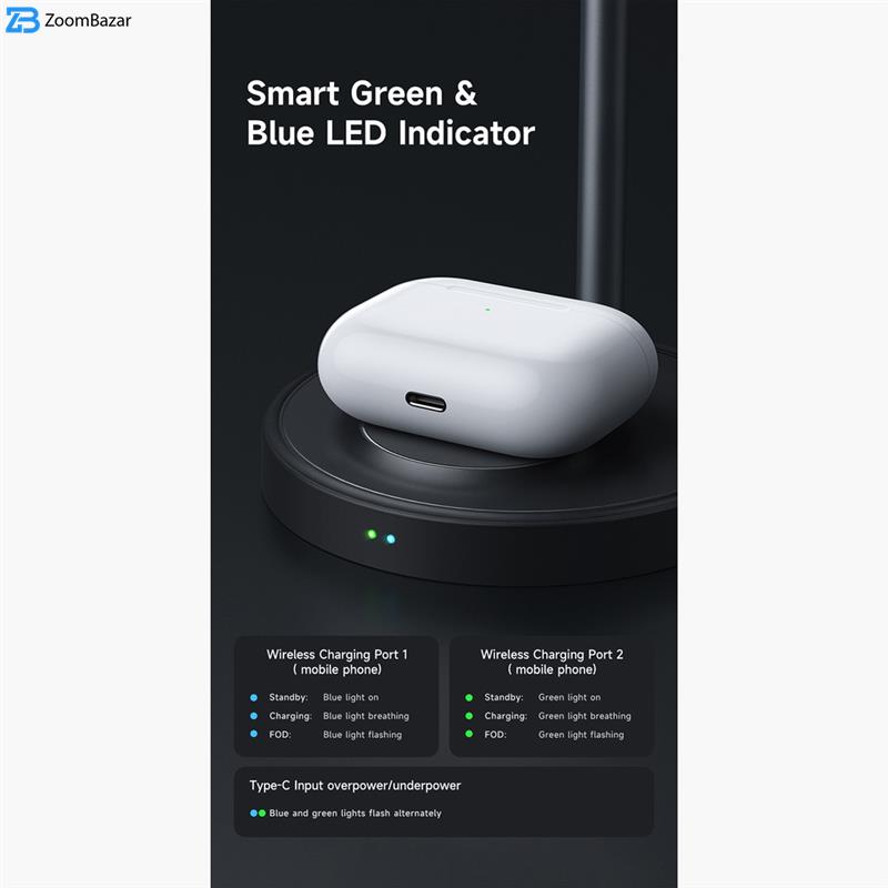 این محصول با طراحی 2 در 1 خود، امکان شارژ همزمان گوشی‌های هوشمند و ایرپادها (TWS) را فراهم می‌کند. پایه مغناطیسی قدرتمند 3300Gs این محصول، دستگاه شما را به سرعت و به‌طور دقیق به‌صورت خودکار تراز می‌کند، که تجربه شارژ را آسان‌تر و سریع‌تر می‌کند. همچنین این شارژر قابلیت استفاده به‌عنوان پایه نگهدارنده برای گوشی در حالت عمودی را دارد که برای تماشای ویدیو یا تماس‌های تصویری ایده‌آل است.
