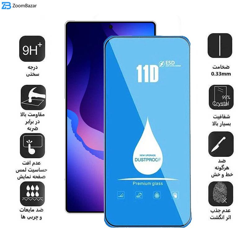 یکی از بدترین اتفاقاتی که می‌تواند برای گوشی رخ دهد آسیب دیدن نمایشگر آن است. اگر به دنبال یک گلس با کیفیت بالا می‌گردید خرید محافظ صفحه نمایش 11D اپیکوی مدل Blue ESD مدل تمام صفحه را به شما پیشنهاد می‌کنیم، زیرا هم چسبندگی و هم مقاومت بالایی به ضربه‌ دارد. در صورت آسیب به نمایشگر گوشی، علاوه بر هزینه‌ی بالایی که باید برای تعویض LCD پرداخت کنید، ممکن است کیفیت آن از نظر لمسی و ظاهری هیچوقت مثل روز اول نشود. به همین دلیل هم هست که هنگام خرید لوازم جانبی گوشی اولین گزینه‌ای که انتخاب می‌کنیم محافظ صفحه است.این گلس از شیشه‌ی حرارت دیده ساخته شده است.این نوع شیشه مقاومت خیلی بالاتری نسبت به گلس معمولی دارد و شکنندگی پایین‌تری هم خواهد داشت.وقتی هم بشکند به قطعات تیز و برنده تبدیل نمی‌شود، بنابراین امنیت بهتری هم دارد.این نوع محافظ صفحه نمایش دارای پوشش چربی گریز است.این پوشش مخصوص از ماندن لک چربی، اثر انگشت و … روی سطح جلوگیری می‌کند.در نتیجه سطح گلس همواره تمیز و شفاف باقی می‌ماند.ضخامت این گلس خیلی پایین و حدود 0.33 میلی‌متر است. این ضخامت کم سبب می‌شود حساسیت لمسی گوشی با هیچ مشکلی مواجه نشود و تاخیری در پاسخ دهی لمسی حس نکنید.این گلس چسبندگی بالایی دارد. وقتی آن را روی گوشی نصب می‌کنید خیلی سریع و با کیفیت بالا می‌چسبد و نمی‌گذارد سطح دچار حباب بشود. علاوه بر آن لبه‌ها هم به مرور زمان بالا نمی‌آیند،مشکلی که شاید در برچسب‌ها یا گلس‌های بی‌کیفیت مشاهده شود.ضخامت کم این گلس باعث شده تا کوچکترین تاثیری روی کیفیت و وضوح صفحه نمایش نداشته باشد و می‌توانید با خیال راحت از آن استفاده کنید.این گلس ماندگاری بسیار بالایی دارد. می‌توانید تا مدت‌های طولانی بدون مشکل از آن استفاده کنید و نگران شکستن و یا آسیب دیدن آن در اثر ضربه یا فشار نخواهید بود.محافظ صفحه نمایش 11D اپیکوی مدل Blue ESD شفافیت کاملی دارد که اجازه نمی‌دهد کیفیت نمایشگر پایین بیاید.گلس رنگ‌ها را تغییر نمی‌دهد و هیچ تفاوتی را حس نمی‌کنید.پوشش سراسری دارد. هم لبه‌ها و هم قسمت‌های مرکز صفحه و گوشه‌ها به طور کامل پوشش داده می‌شوند و هیچ مشکلی از نظر کار کردن با گوشی نخواهید داشت.اگر این گلس را درست و دقیق نصب کنید هیچ حبابی زیر و در اطراف آن تشکیل نمی‌شود.نصب این گلس بسیار آسان و راحت میباشد.
