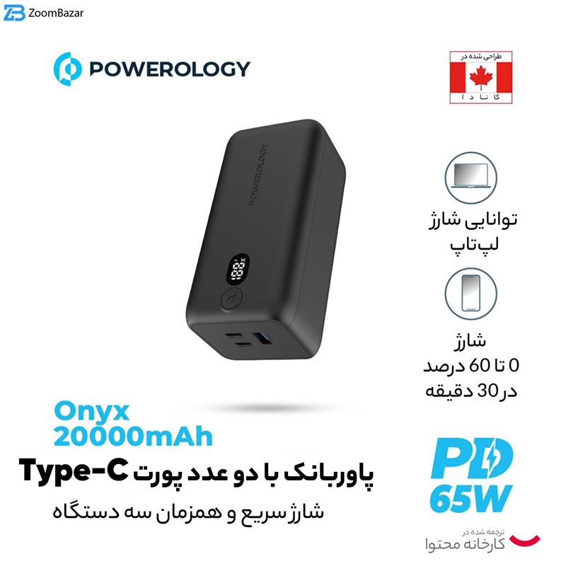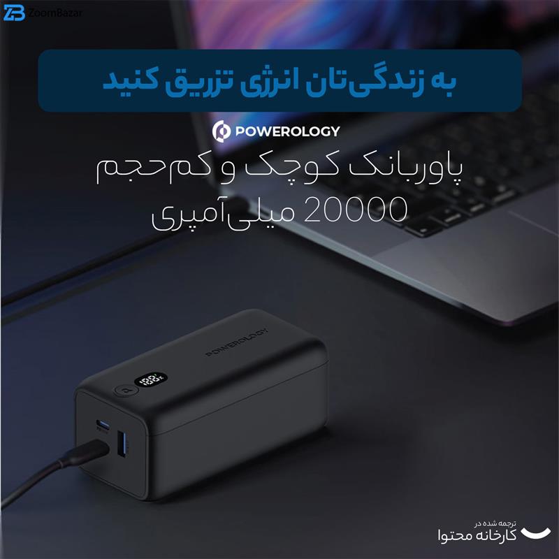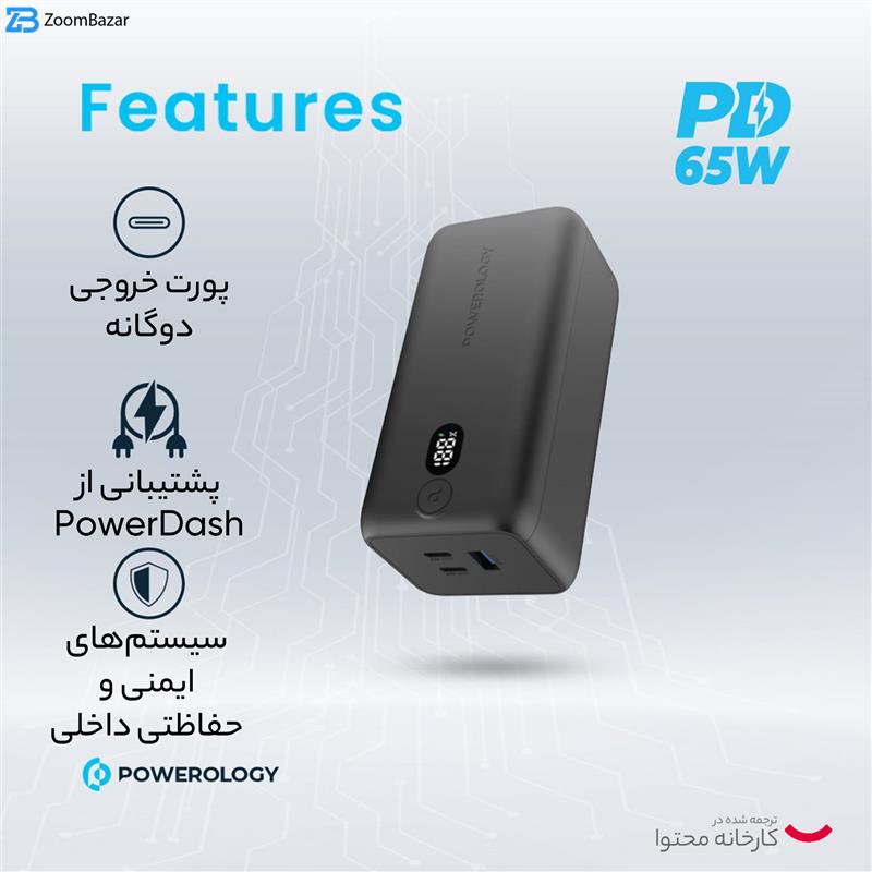پاوربانک پاورولوجی مدل 65 وات موبوادیشن ظرفیت 20000 میلی آمپر ساعت
