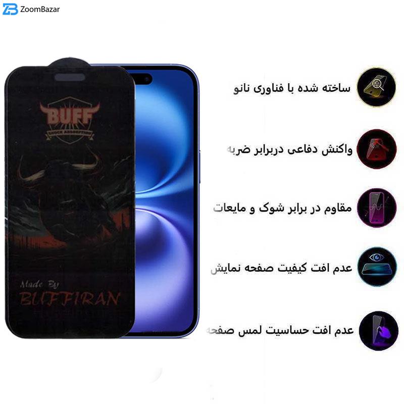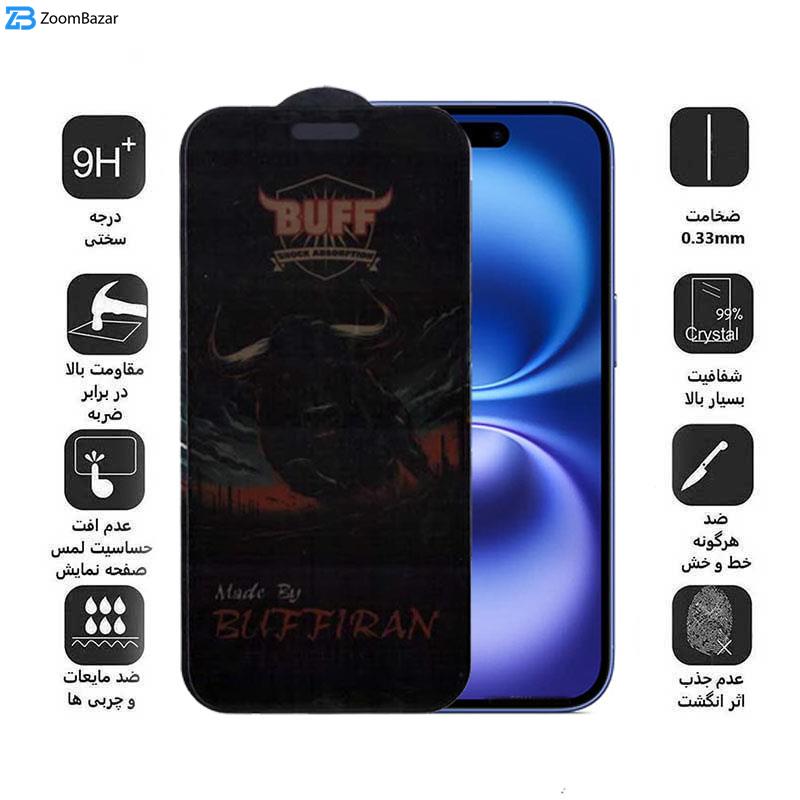 محافظ صفحه نمایش حریم شخصی بوف مدل BullRun Privacy Pro-G مناسب برای گوشی موبایل اپل iPhone 16/15