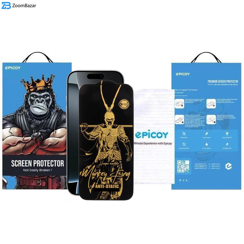 در زمینه محافظ صفحه نمایش،شرکت اپیکوی گلس های مختلف و متنوع طراحی و ساخته است که یکی از مرغوب ترین و با کیفیت ترین گلس های این شرکت گلس Wukong ESD می‌باشد که محبوبیت خاصی بین کاربران دارد. علت این امر مواد اولیه مرغوب، پوشش کامل صفحه نمایش، چسیندگی بسیار بالا و مهم تر از همه خاصیت آنتی استاتیک است که در ادامه توضیح داده می‌شود. گلس Wukong ESD دارای لبه هایی با قوس 2.5D می‌باشد که این امر بسیار دارای اهمیت است. زیرا لبه های گلس دارای منحنی است و به دست یا وسایلی گیر نمیکند که باعث بلند شدن و یا شکستن محافظ صفحه نمایش شود. و همچنین ضخامت این گلس 0.3 میلیمتر میباشد که یکی از مهمترین موارد در طراحی گلس است. این محافظ صفحه نمایش دارای خاصیت آنتی استاتیک است. این ویژگی باعث می‌شود گرد و غبار جذب گلس نشود و به همین دلیل هم نصب خیلی راحتی داشته باشد. محافظ صفحه نمایش اپیکوی مدل Wukong ESD دارای مقاومت بالا در برابر انواع ضربه های ناگهانی است. زیرا این گلس بسیار حرارت دیده و از سختی 9H برخوردار است. این گلس در برابر ضربه سه برابر از گلس های معمولی مقاومتر است. لبه های این محافظ صفحه نمایش به طور ویژه تری ساخته شده تا از شکستگی های لبه محافظ صفحه نمایش و LCD محافظت کند و از خرد شدگی جلوگیری میکند. در کنار داشتن کیفیت و وضوح HD این گلس باعث می‌شود به راحتی انگشت کاربر روی سطح گلس حرکت کند و هیچگونه مشکلی در این زمینه نداشته باشد. سطح محافظ صفحه نمایش اپیکوی مدل Wukong ESD چربی گریز و آب گریز است. در نتیجه قطرات آب، لکه‌های چربی و آلودگی یا اثر انگشت روی آن جا نمی‌اندازند و ردشان باقی نمی‌ماند. همواره صفحه‌ای تمیز خواهید داشت که از کار با آن لذت می‌برید و یا در صورت ایجاد لکه با یک دستمال ساده کاملا به حالت اول و شفاف خود باز میگردد. این گلس طوری طراحی و ساخته شده که مانع از انعکاس نور در فضاهای باز و محیط های روشن است که باعث محافظت بیشتر از چشم کاربر میشود و از خستگی چشم جلوگیری می‌کند، هیچ گونه کاهشی بروی حساسیت تاچ نمایشگر گوشی کاربر ایجاد نمیشود و دارای قابلیت نصب اسان است. لبه ی مشکی روی لبه ی قسمت های مشکی صفحه نمایش شما قرار میگیرد و به این ترتیب از تمامی نمایشگر گوشی همراه خود میتوانید استفاده نمایید و از آسیب به آن جلوگیری کنید.