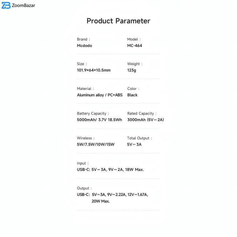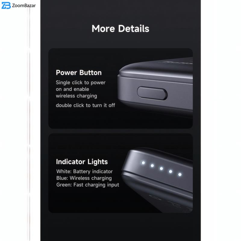 • امکانات و قابلیت‌ها کالای اورجینال مک دودو، واردات انحصاری تیم تکنیک تل، شارژ سریع PD 20 وات، چراغ نشانگر LED میزان شارژ، خاصیت مگنتی برای اتصال گوشی، بدنه بسیار نازک و مقاوم، دارای قابلیت های محافظتی جلوگیری از شارژ بیش از حد و حفاظت در برابر اتصال کوتاه