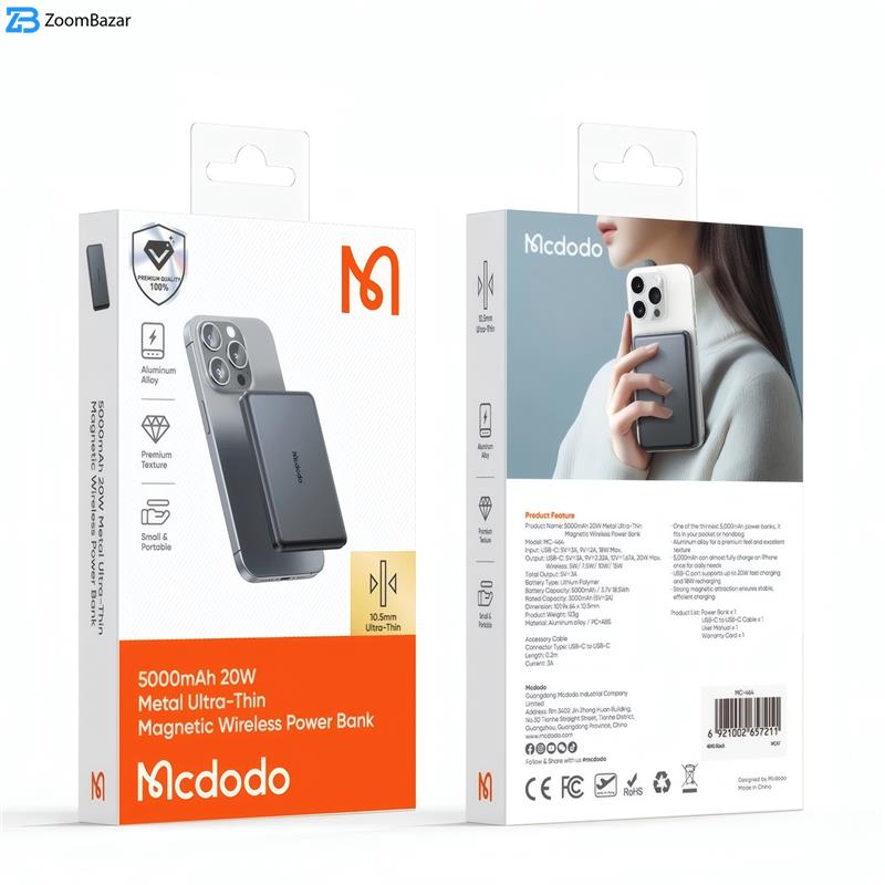 کالای اورجینال مک دودو، واردات انحصاری تیم تکنیک تل، شارژ سریع PD 20 وات، چراغ نشانگر LED میزان شارژ، خاصیت مگنتی برای اتصال گوشی، بدنه بسیار نازک و مقاوم، دارای قابلیت های محافظتی جلوگیری از شارژ بیش از حد و حفاظت در برابر اتصال کوتاه