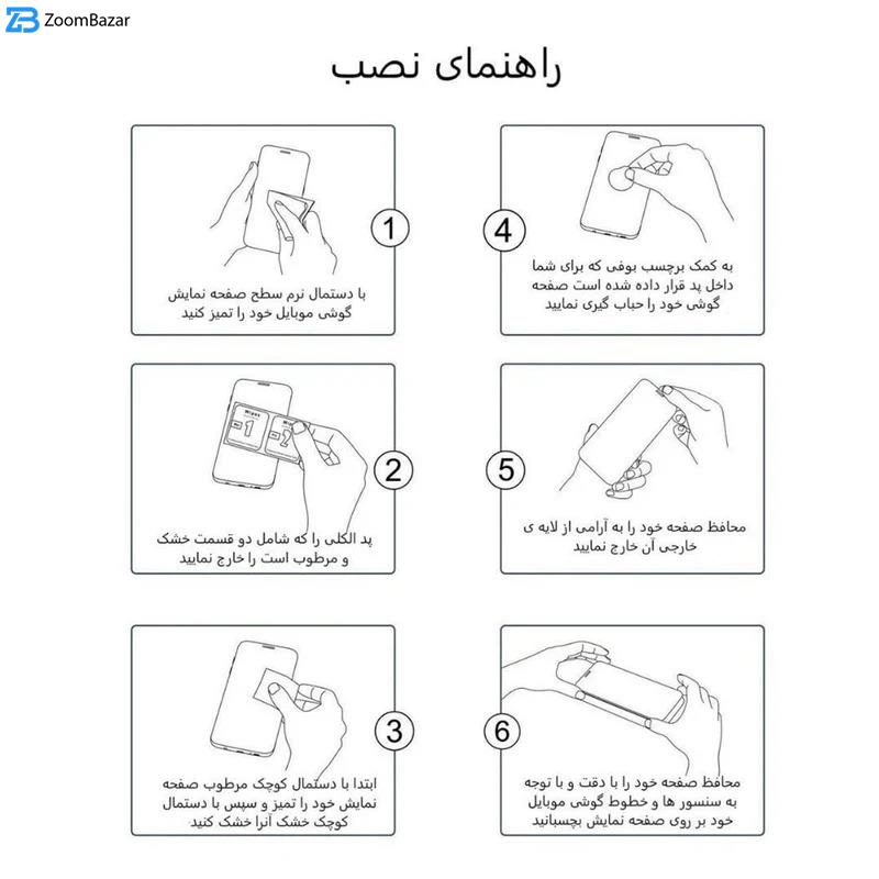 - ویژگیها 9H، قابلیت نصب آسان، مقاوم در برابر چربی و اثرانگشت، مقاوم در برابر خط و خش، نصب بدون حباب، صفحه نمایش