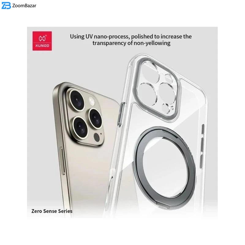 شاید شما هم از جمله کسانی باشید که دوست ندارند ظاهر زیبای گوشی خود را توسط قاب بپوشانند. در این صورت این قاب را به شما پیشنهاد می‌دهیم. این قاب از نوع شفاف و بی رنگ است و از کیفیت بالایی بهره می‌برد. کاور اپیکوی Xundd Zero Sense Magnetic بر خلاف دیگر قاب‌های شفاف ژله‌ای به سادگی زرد نمی‌شود و تا مدت زیادی می‌توانید از آن لذت ببرید همچنین در این مدل حلقه مگنتی متشکل از چندین آهن ربای ریز و قدرتمند طراحی و قرار داده شده است تا بتوانید بدون نیاز به خارج کردن گوشی از MagSafe آن جهت شارژ یا اتصال های بدون بی سیم به سادگی و به شکلی عالی استفاده نمایید. همچنین این حلقه با قابلیت تبدیل به استند در زوایای مختلق طراحی شده است تا تجربه کاربری بهتری را برای شما بسازد. سک نکته جالب در خصوص این کاور وجو برچسب هایی است که درون آن قرار دارد و میتوانید آن هارا به سلیقه خود در دایره وسط حلقه قرار دهید و آن را زیبا کنید. مقاومت بالا و مناسبی در برابر هرگونه آسیب و خط و خش دارد و با خیال راحت‌تری می‌توانید از گوشی خود لذت ببرید. نه تنها تغییری در ظاهر و استایل گوشی ایجاد نمی‌کند، بلکه رنگ آن را هم اصلا تغییر نمی دهد و می‌توانید از اصالت گوشی زیبای خود لذت ببرید.پشت این قاب از پلی کربنات ساخته شده که جنسی نسبتا سخت دارد. در نتیجه به خوبی در برابر خط و خش مقاومت می‌کند و به راحتی آسیب نخواهد دید.استفاده از پلی کربنات برای قاب یک مزیت مهم دیگر هم دارد و آن این است که در اثر گذشت زمان زرد و کدر نمی‌شود. مشکلی که معمولا برای قاب‌های ژله‌ای شفاف پیش می‌آید و زیبایی آن را از بین می‌برد.از مواد و متریال‌های باکیفیت در طراحی و ساخت این قاب استفاده شده است. در نتیجه دوام و کیفیت بالایی دارد و می‌توانید مدت‌های طولانی بدون مشکل از این قاب استفاده کنید.دور تا دور قاب نرم و منعطف است. خیلی راحت می‌توانید آن را روی گوشی نصب کنید و یا بردارید. به خوبی دور گوشی فیکس می‌شود و شل یا لق نیست.این کاور طراحی ظریف و باریکی دارد. به همین دلیل هم گوشی شما را حجیم و سنگین نمی‌کند. خیلی خوش دست است و به راحتی می‌توانید گوشی را در دست کنترل کنید. لبه‌ها دقیقا با لبه‌های گوشی هماهنگند. جای دوربین و جای دکمه‌ها کاملا مشخص است.اگر به قاب دقت کنید می‌بینید که گوشه‌های آن شیار دار و تقویت شده است.