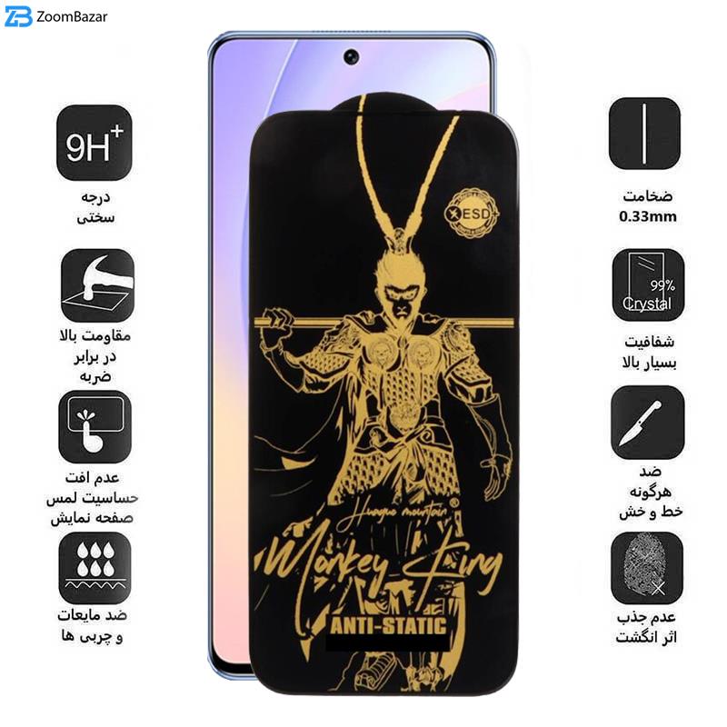 در زمینه محافظ صفحه نمایش،شرکت اپیکوی گلس های مختلف و متنوع طراحی و ساخته است که یکی از مرغوب ترین و با کیفیت ترین گلس های این شرکت گلس Wukong ESD میباشد که محبوبیت خاصی بین کاربران دارد. علت این امر مواد اولیه مرغوب، پوشش کامل صفحه نمایش، چسیندگی بسیار بالا و مهم تر از همه خاصیت آنتی استاتیک است که در ادامه توضیح داده میشود. گلس Wukong ESD دارای لبه هایی با قوس 2.5D میباشد که این امر بسیار دارای اهمیت است. زیرا لبه های گلس دارای منحنی است و به دست یا وسایلی گیر نمیکند که باعث بلند شدن و یا شکستن محافظ صفحه نمایش شود. و همچنین ضخامت این گلس 0.3 میلیمتر میباشد که یکی از مهمترین موارد در طراحی گلس است. این محافظ صفحه نمایش دارای خاصیت آنتی استاتیک است. این ویژگی باعث میشود گرد و غبار جذب گلس نشود و به همین دلیل هم نصب خیلی راحتی داشته باشد. محافظ صفحه نمایش اپیکوی مدل Wukong ESD دارای مقاومت بالا در برابر انواع ضربه های ناگهانی است. زیرا این گلس بسیار حرارت دیده و از سختی 9H برخوردار است. این گلس در برابر ضربه سه برابر از گلس های معمولی مقاومتر است. لبه های این محافظ صفحه نمایش به طور ویژه تری ساخته شده تا از شکستگی های لبه محافظ صفحه نمایش و LCD محافظت کند و از خرد شدگی جلوگیری میکند. در کنار داشتن کیفیت و وضوح HD این گلس باعث میشود به راحتی انگشت کاربر روی سطح گلس حرکت کند و هیچگونه مشکلی در این زمینه نداشته باشد. سطح محافظ صفحه نمایش اپیکوی مدل Wukong ESD چربی گریز و آب گریز است. در نتیجه قطرات آب، لکههای چربی و آلودگی یا اثر انگشت روی آن جا نمیاندازند و ردشان باقی نمیماند. همواره صفحهای تمیز خواهید داشت که از کار با آن لذت میبرید و یا در صورت ایجاد لکه با یک دستمال ساده کاملا به حالت اول و شفاف خود باز میگردد. این گلس طوری طراحی و ساخته شده که مانع از انعکاس نور در فضاهای باز و محیط های روشن است که باعث محافظت بیشتر از چشم کاربر میشود و از خستگی چشم جلوگیری میکند، هیچ گونه کاهشی بروی حساسیت تاچ نمایشگر گوشی کاربر ایجاد نمیشود و دارای قابلیت نصب اسان است. لبه ی مشکی روی لبه ی قسمت های مشکی صفحه نمایش شما قرار میگیرد و به این ترتیب از تمامی نمایشگر گوشی همراه خود میتوانید استفاده نمایید و از آسیب به آن جلوگیری کنید.