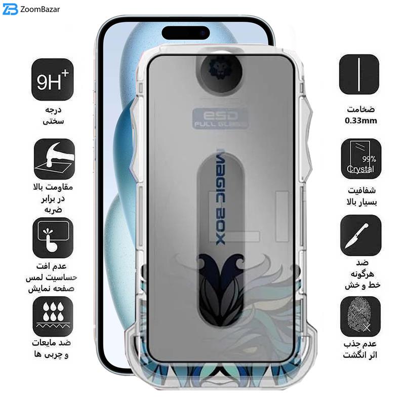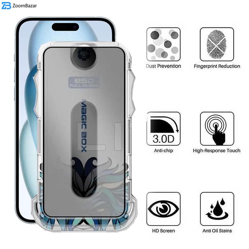 محافظ صفحه نمایش حریم شخصی اپیکوی مدل Lion Privacy Easy Install مناسب برای گوشی موبایل اپل iPhone 16/15/14 Pro به همراه کیت نصب