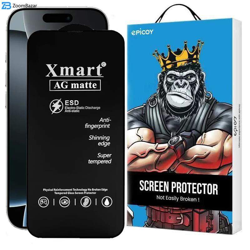 یکی دیگر از گلس‌های با کیفیت اپیکوی برای گوشی شما محافظ صفحه نمایش اپیکوی مدل Xmart Ag Matte است که نور را بازتاب نمی‌دهد، بنابراین در هر محیطی حتی زیر نور شدید آفتاب هم نمایشگر با وضوح قابل دیدن است و برگشت نور چشم را نمی‌زند و اذیت نمی‌کند. با خرید محافظ صفحه نمایش اپیکوی مدل Xmart Ag Matte از گوشی خود محافظت بالایی به عمل خواهید آورد، زیرا ضد شوک است و با گوشه‌های تقویت شده در برابر ضربه مقاومت بالایی دارد.محافظ صفحه نمایش اپیکوی مدل Xmart Ag Matte با شیشه‌ای مات و با پوشش و فوق العاده شفاف، پوشش ضدتابش از نور خیره جلوگیری میکند، که ترکیب کاملی از قدرت و نرمی است، ساخته شده است.این گلس با شیشه ای بسیار قوی با سختی 9H ساخته شده است که در برابر خراش ، ضربه های شدید ، خرد شدن و ضربه مقاوم است.پوشش مات محافظ صفحه نمایش اپیکوی مدل Xmart Ag Matte صفحه نمایش را تمیز و عاری از آلودگی و خشک و تلفن همراه شما را ایمن نگاه میدارد، و عملکرد انگشتان برای استفاده و بخصوص بازی را روان تر و راحتتر مینماید. در مقایسه با محافظ صفحه هایی که دارای پوشش مات نیستند و اثر انگشت لکه ها به راحتی روی آنها میماند.محافظ صفحه نمایش اپیکوی مدل Xmart Ag Matte بسیار مقاوم و محکم دربرابر خط و خراش است، گلس محافظ شیشه ای با سختی 9H دربرابر ضربه مقاوم و جلوگیری از خراش از جسم تیز است. دارای لبه هایی قوی تر با استحکام بالاتر، و نشکن است. دارای پوشش تمام صفحه و بدون شکاف، با لبه منحنی 2.5 بعدی است.دارای پوششی مات است. مات بودن گلس باعث می‌شود عرق نکند، چربی را به خود جذب نکند و اثر انگشت و لکه‌های مختلف روی آن جا نمی‌اندازد. در نتیجه ظاهرش کثیف و کدر نمی‌شود و مشکلی در استفاده از آن ایجاد نمی‌کند.مهم‌ترین ویژگی این گلس نسبت به سایر محافظ‌های صفحه دوام بالا و کیفیت خوب آن است. لب‌پر نمی‌شود. در گذر زمان کثیف و کدر نمی‌شود و می‌توانید با خیال راحت تا مدت‌های طولانی از آن استفاده کنید.جمع شدن گرد و غبار و آلودگی‌ها در قسمت گیرنده گوشی، به مرور دریچه‌های آن را مسدود می‌کند و صدای ضعیف‌تری خواهید شنید.