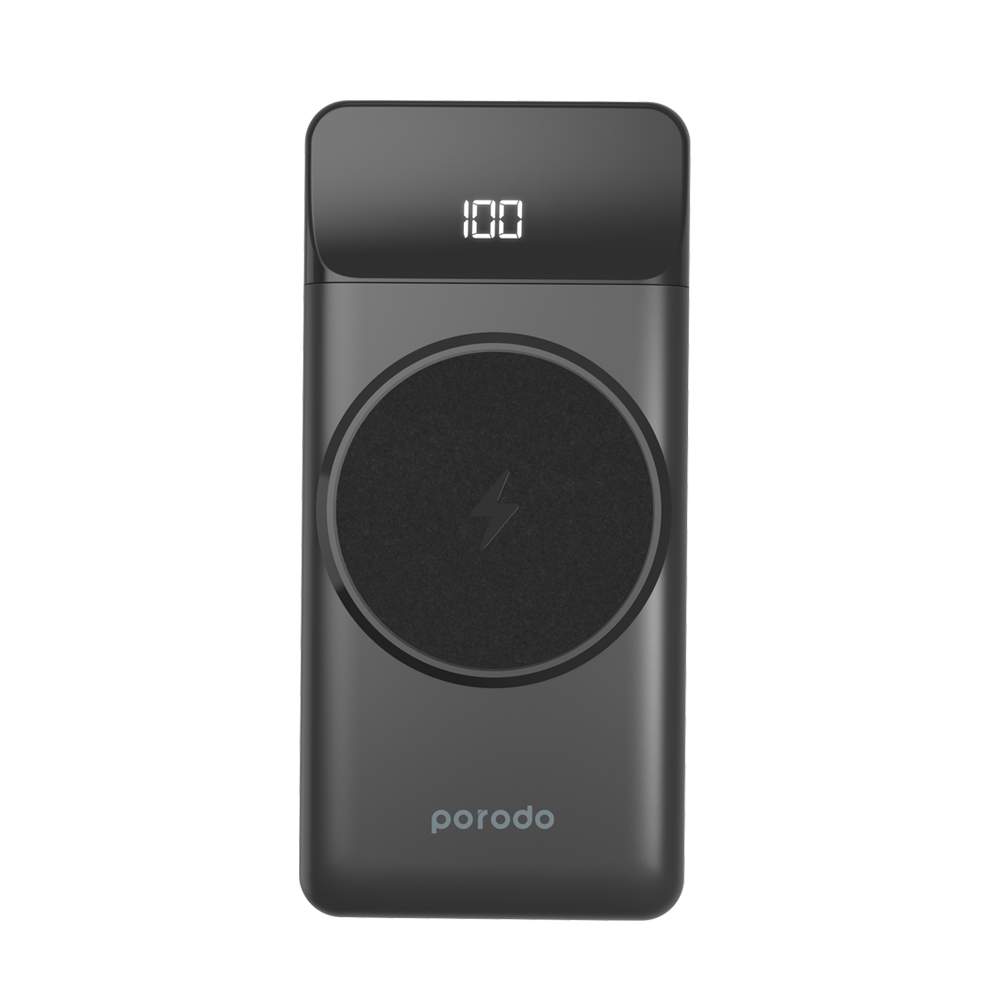 پاوربانک Porodo MagSafe Power Bank 10000mAh PD-PBFCH004-BK پورودو دارای طراحی بسیار ساده‌ای می‌باشد. ابعاد آن 9.4 x 6.3 x 2.5 سانتی‌متر بوده و وزنی معادل 205 گرم دارد. حمل آن بسیار راحت بوده و جای بسیار کمی را اشغال می‌کند. همچنین از مواد بسیار با کیفیت و نسوز تشکیل شده است.