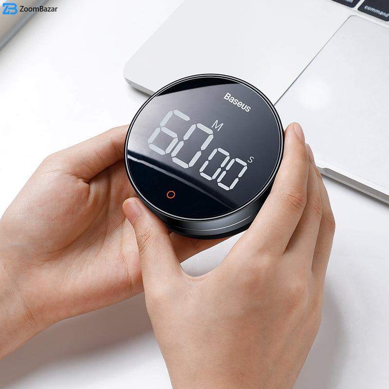 تایمر دیجیتال باسئوس مدل FMDS000013 دارای ویژگیهای مختلفی است که آن را بسیار کاربردیتر از یک تایمر معمولی کرده است. جنس بدنه این زمان سنج از ABS و آلیاژ آلومینیوم است و مقاومت خوبی دارد. قسمت زیرین آن دارای آهنربایی است که میتوان به راحتی توسط این آهنربا، تایمر را به محلهای فلزی چسباند و مورد استفاده قرار داد. محلهایی مانند بدنه فلزی یخچال، مایکرو ویو و… . با این مگنت، قرار دادن تایمر در آشپزخانه خیلی راحتتر خواهد شد و میتوان گفت که آشپزی، شیرینیپزی و… که خیلی از اوقات نیاز به زمان سنجی دقیق دارند، بسیار راحتتر صورت میگیرد.