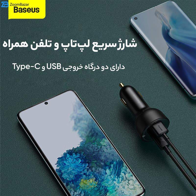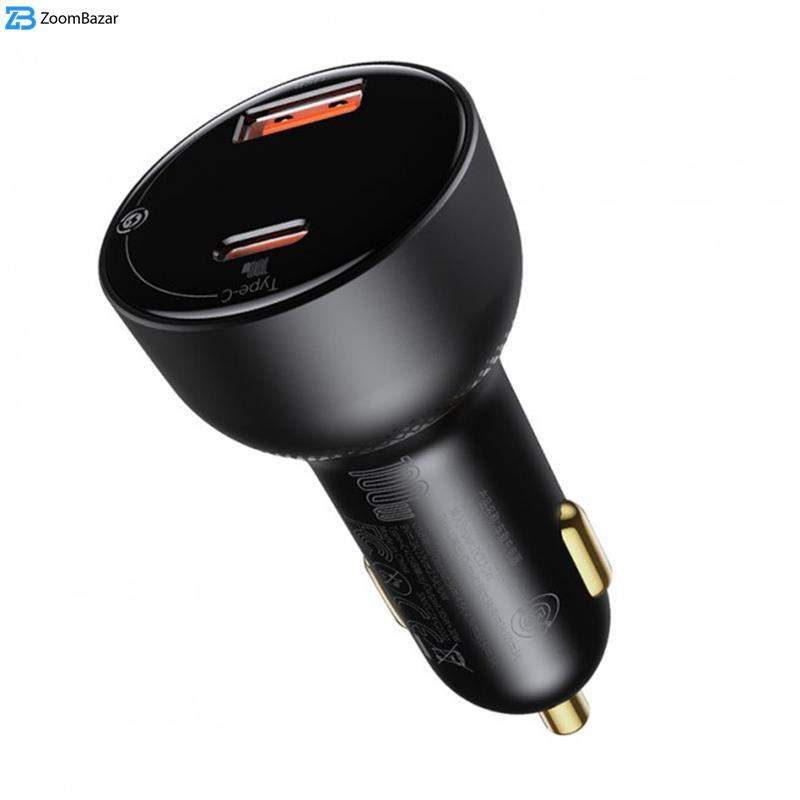 • توضیحات شارژر فندکی باسئوس دارای یک پورت USB و یک پورت Type-c برای شارژ همزمان دو دستگاه با حداکثر توان خروجی 100 واتی است که از تکنولوژی شارژ سریع PD پشتیبانی می کند.