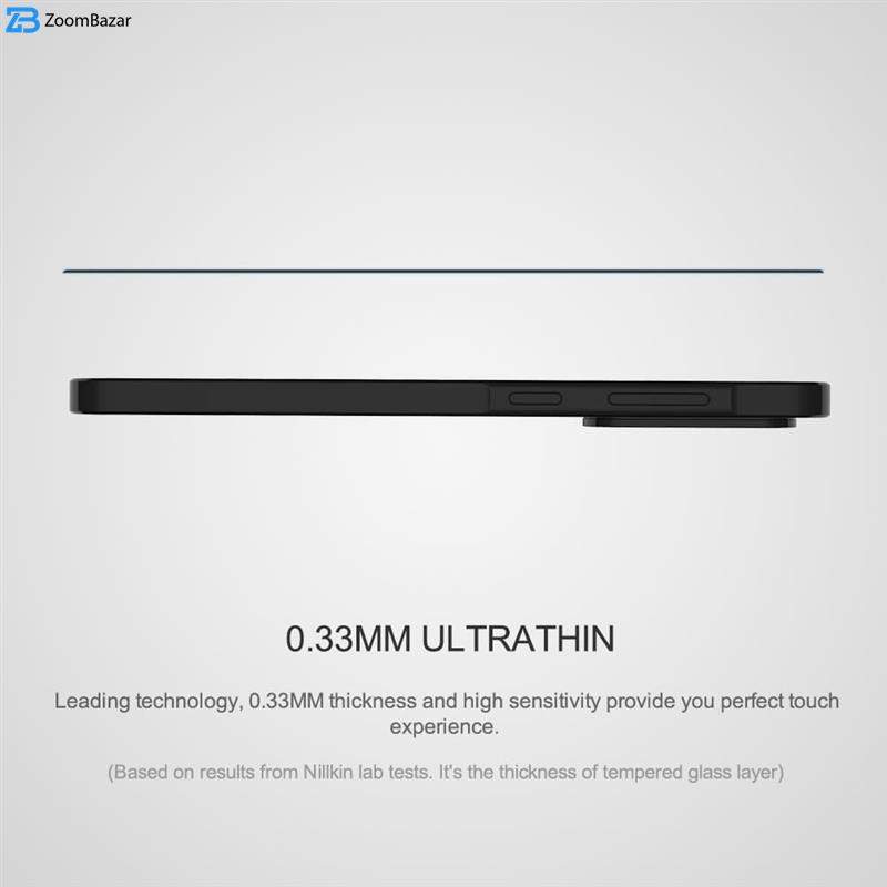 محافظ صفحه نمایش نیلکین مدل CP Plus Pro با پوشش کامل نمایشگر و لبه ها از صفحه نمایش گوشی در برابر ضربه و خط و خراش حفاظت می کند. محافظ شیشه ای نیلکین با دستگاه های CNC برش خورده است و لبه های خمیده آن به خوبی روی نمایشگر را می پوشاند. برش های شیشه محافظ نیلکین کاملا نرم بوده و لبه های آن آسیبی به دست کاربر وارد نمی کند. نیلکین این محافظ شیشه ای را از شیشه AGC ژاپن طراحی کرده است که با ضخامت 0.33 میلی متر از باریک ترین محافظ های شیشه ای موجود در بازار محسوب می شود.محافظ شیشه ای نیلکین در زوایای گوشی به نرمی برش خورده است تا تیز نباشد. برش دایره ای و ملایم گلس نیلکین در قسمت لبه ها، باعث شده است این محافظ شیشه ای به خوبی روی نمایشگر قرار بگیرد و ضمن پوشش کامل و سراسری صفحه نمایش از روی آن بلند نشود.محافظ صفحه نمایش نیلکین مدل CP Plus Pro ، با برش 2.5D در لبه های کناری کاملا حاشیه های گوشی را پوشش دهد و از نمایشگر گوشی به خوبی حفاظت کند. شیشه محافظ ژاپنی که نیلکین برای گلس CP+Pro طراحی کرده است ضخامت بسیار ناچیزی دارد. این محافظ شیشه ای با ضخامت 0.33 میلی متر باعث می شود تا لمس صفحه نمایشگر به راحتی انجام شود.محافظ صفحه نیلکین CP+Pro از چندلایه تشکیل شده است که باعث می شود تا تا ضمن پوشش بهتر و تمام صفحه نمایشگر گوشی، به خوبی نصب شده و در برابر خراشیدگی و اثرانگشت از آن محافظت کند.محافظ صفحه نمایش نیلکین مدل CP Plus Pro نسبت به خط و خراش با داشتن سختی 9H کاملا مقاوم است. در نتیجه اگر گوشی کاربران در کیف کنار وسایل تیز نظیر دسته کلید قرار بگیرد آسیبی به نمایشگر آن وارد نخواهد شد و کاربران می توانند از سلامت صفحه نمایش گوشی خود اطمینان خاطر پیدا کنند. یکی از مشکلاتی که کاربران برای استفاده از گلس بر روی گوشی خود دارند، کاهش وضوح صفحه نمایش و ضعیف شدن تاچ گوشی است. شاید بتوان گفت اصلی‌ترین ویژگی گلس‌های نیلکین شیشه‌های بسیار شفاف استفاده شده در تولید آن‌هاست؛ به‌طوری که نسبت به سایر محصولات مشابه، بالاترین میزان حفظ وضوح و شفافیت نمایشگر گوشی در گلس تمام صفحه نیلکین CP Plus Pro مشاهده می‌شود.این محافظ شیشه ای ، از جنس باکیفیت و بادوامی ساخته شده است که در برابر ضربه و خط و خراش مقاومت بسیار بالایی از خودش نشان می‌دهد و به هیچ وجه نگران آسیب دیدن گوشی خود نخواهید بود.