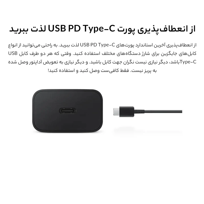 شارژر فست 15 وات سامسونگ سه پین کابل دار مدل EP-T1510، به همراه گارانتی 6 ماه همراه سرویس بوف
