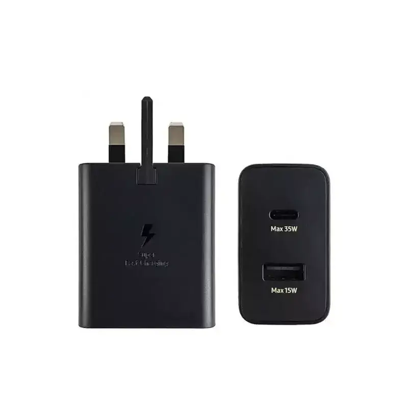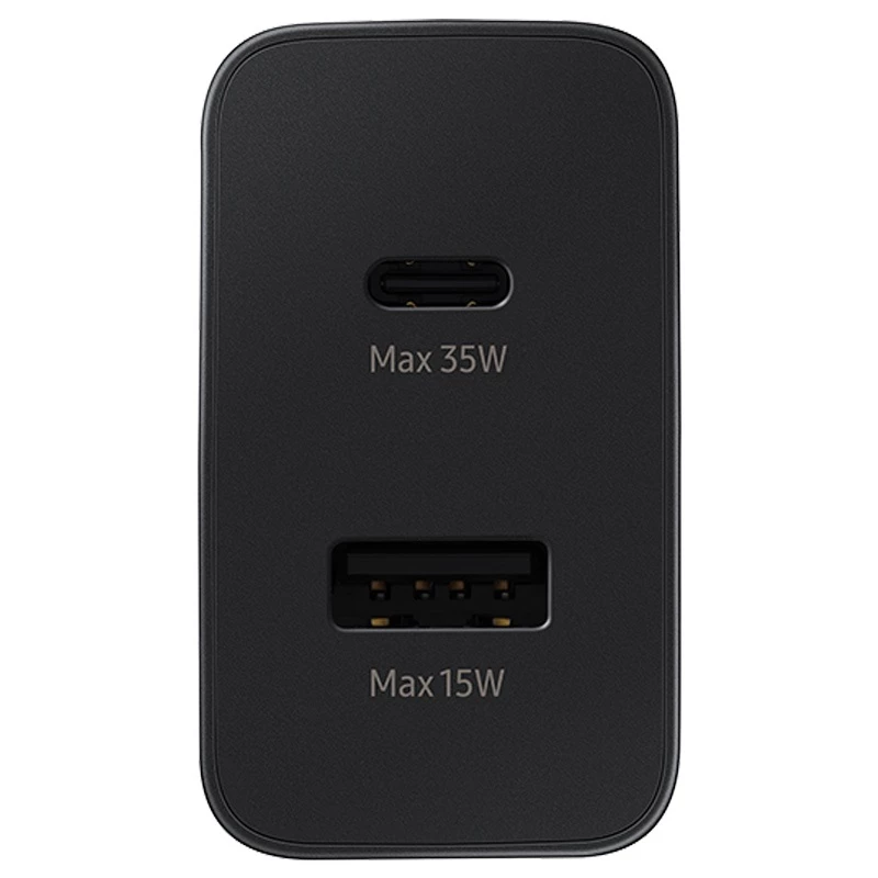 شارژر 35 وات سامسونگ با طراحی سبک و مینیمال، شارژی ایمن، پایدار و با سرعت بالا را برای طیف گستردهای از دستگاههای سامسونگ، اپل، آیفون و … فراهم میکند.شارژر دیواری سامسونگ مدل EP-TA220 با دارا بودن دو درگاه خروجی، قابلیت شارژ همزمان دو دستگاه را دارد. پورتهای خروجی آن شامل یک درگاه USB با حداکثر خروجی 15 وات و یک درگاه Type-C با ماکزیمم خروجی 35 وات است.شارژر 35 وات سامسونگ از طیف گستردهای از دستگاههای سامسونگ و غیر سامسونگ از جمله موبایل، تبلت، لپ تاپ، ساعت هوشمند، هندزفری بلوتوث و شارژر بی سیم پشتیبانی میکند.این شارژر از فناوری شارژ فوق سریع (SFC) پشتیبانی میکند. دستگاههای Galaxy Notes (از Galaxy Note 10 به بالا) و سریهای Galaxy S (از Galaxy S10 5G به بالا) و سایر دستگاههای دارای قابلیت SFC مانند آیفون (iPhone 8 به بالا) میتوانند از این شارژ فوق سریع بهره ببرند. نرخ شارژ ممکن است بسته به نوع و تعداد دستگاههایی که به طور همزمان شارژ میشوند، متفاوت باشد.