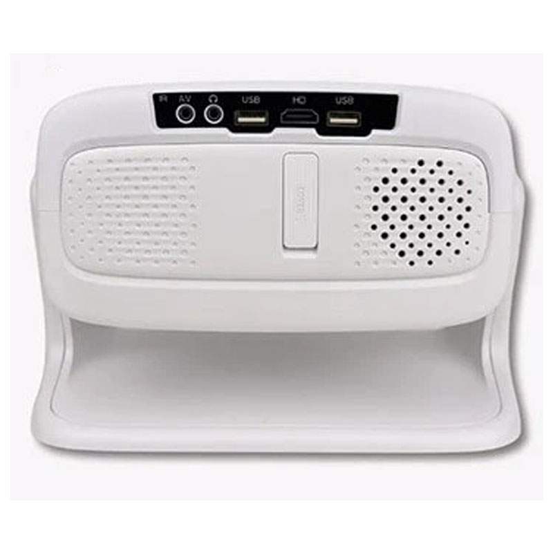 ویدئو پروژکتور umiio u10 یک شاهکار از برند یومیو است که تصاویر با کیفیت فول اچ دی و روشنایی بالا تا 300 اینچ به شما نمایش میدهد. این دستگاه منحصر به فرد, یک انتخاب عالی برای کسانی که می خواهند بدون هزینه اضافی از تصاویر با کیفیت بالا در یک صفحه نمایش بزرگ لذت ببرند. این پروژکتور مجهز به ورودی HDMI داخلی است که به شما امکان می دهد هر دستگاهی از جمله لپ تاپ، تبلت و کنسول های بازی (پلی استیشن یا ایکس باکس و غیره) را به آن متصل کنید، می توانید فیلم ها را به صورت آنلاین با اتصال به اینترنت مستقیماً از پروژکتور تماشا کنید. کیفیت تصویر فول اچ دی با کدگذاری 4K. از مزایای این پروژکتور، پورت HDMI (ورودی)، فیلتر خنک کننده داخلی و پوشش قابل جدا شدن برای دسترسی به لنز، اتصال به هر مدل از گوشی های iOS و اندروید، پردازنده قدرتمند و لامپ روشن، پردازنده گرافیکی عالی و تصویر صاف می باشد. این ویدئو پروژکتور از وضوح تصویر 1920×1080 و صفحه نمایش 50-300 اینچی پشتیبانی می کند. این پروژکتور با استاندارد طیف رنگی P3 در مقایسه با استاندارد SRGB ساخته شده است. برای چشم ایمن است. روشن تر از پروژکتور معمولی است. پروژکتور u10 pro با دارا بودن بلوتوث و Wi-Fi هوشمند می تواند به وای فای 5G متصل شود و با iOS/Android سازگار است. مجهز به HDMI / USB دو رابط برای اتصال سیمی به دستگاه دیگر. همچنین می تواند به صورت بی سیم صفحه گوشی را به پروژکتور منعکس کند.