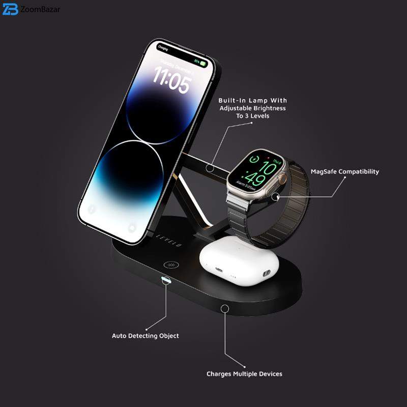 با شارژ بی سیم 5 در 1 Levelo Premio، محیطی بدون کابل و بدون دردسر را روی میز خود تجربه کنید. این پد شارژ نوآورانه برای راحتی کاربر طراحی شده است. این دستگاه از تکنولوژی MagSafe استفاده میکند و به شما امکان میدهد آیفون، اپل واچ و ایرپاد خود را بدون زحمت شارژ کنید. با فناوری شارژ سریع، دستگاههای شما در سریعترین زمان ممکن شارژ میشوند. این پد شارژ با اجرای اقدامات حفاظتی در برابر جریان بیش از حد و ولتاژ بیش از حد، ایمنی دستگاه را در اولویت قرار میدهد. علاوه بر این، با چراغ های LED تعبیه شده در آن محیط اطراف شما را روشن میکند و در عین حال بسیار کاربردی و کارآمد است. پد شارژ بی سیم مگ سیف 5 در 1 Levelo Premio که با مواد درجه یک ساخته شده است، جلوهای شیک و زیبا به اتاق شما میبخشد. با کابلهای درهم خداحافظی کنید و از یک تجربه شارژ شیک و منظم لذت ببرید.