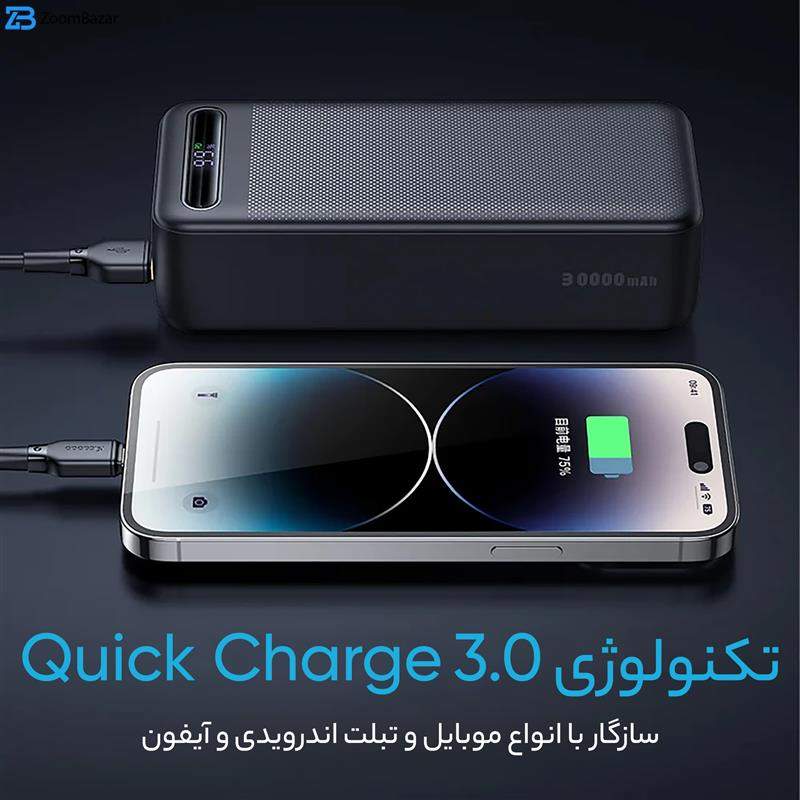 پاوربانک مک دودو 22.5W مدل MC-391 ظرفیت 30000 میلی آمپر ساعت با توان 22.5 وات دارای قابلیت فست شارژ آیفون …