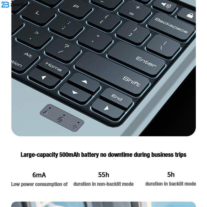 کیف کلاسوری نیلکین مدلBumper Go Keyboard یک کیف محافظ و مقاوم است که دارای یک کیبورد با کیفیت نیز میباشد که با استفاده از آن می توانید به کارهای روزمره بپردازید. تفاوت این مدل با Bumper معمولی دسته ی محکم بالای کیف است که حمل آن را آسان تر میکند. این کیف کلاسوری دور تا دور بدنه دستگاه را میپوشاند.این کیف دارای مقاومت بالای بوده و در برابر ضربه مقاوم است.البته به این معنی نبوده که در برابر ضربات شدید نیز مقاوم است.جنس این کاور ازTPUوPCساخته شده که دارای مقاومت بالایی می باشد.این کیف کلاسوری دارای محافظ دوربین بوده که به صورت کشویی عمل میکند.یکی از قابلیت های مفید در قاب تبلت ها داشتن استند است؛چون این دستگاه ها ابعاد بزرگی دارند و نگهداری از آنها روی استند بسیار راحت تر و کم خطر تر است.از همین رو کیف کلاسوری دارای یک استند تاشو است که استحکام کافی برای نگهداشتن و استفاده از تبلت را خواهد داشت.شما می توانید حالت های مختلفی برای قرار گرفتن تبلت انتخاب کنید.این محصول نیلکین دارای یک کیبورد یا صفحه کلید قابل جدا شدن می باشد.شما در صورت نیاز می توانید از این کیبورد استفاده کرده و یا آن را جدا کنید.کلیدهای این کیبورد به گونهای(قطرهای)طراحی شده که قالب انگشتان شما باشد.این کلیدها بسیار بی صدا بوده و وزن پایینی دارد؛بعلاوه کار با آن شما را خسته نمیکند.کلیدهای کیبورد کیف کلاسوری بسیار حساس بوده و با کمترین فشار عمل خواهد کرد.بر روی این کیبورد یک پد لمسی وجود دارد که می توانید از آن به جای موس استفاده کنید.شما می توانید از طریق بلوتوث این کیبورد را به دستگاه خود متصل کنید.نرخ نمونه برداری لمسی پد لمسی آن120هرتز بوده که بسیار حساس بوده و از چند لمس همزمان پشتیبانی می کند.این کیبورد دارای یک باتری150میلی آمپر ساعتی بوده که برای پر شدن آن نیاز به حدود1.5تا2ساعت شارژ بوده و با پر بودن شارژ تا30روز می توانید از آن استفاده کنید؛البته این عدد برای روزی2ساعت کار با کیبورد است که متناسب با استفاده شما متغییر خواهد شد.قابل ذکر است نسخه بلوتوث این کیبورد3.0می باشد و محدوده عملکرد آن حدود10متر است.در قسمت جلویی این قاب، جای برای قرار گرفتن قلم هوشمند اپل تعبیه شده که می توانید قلم خود را در این قسمت ها قرار دهید.