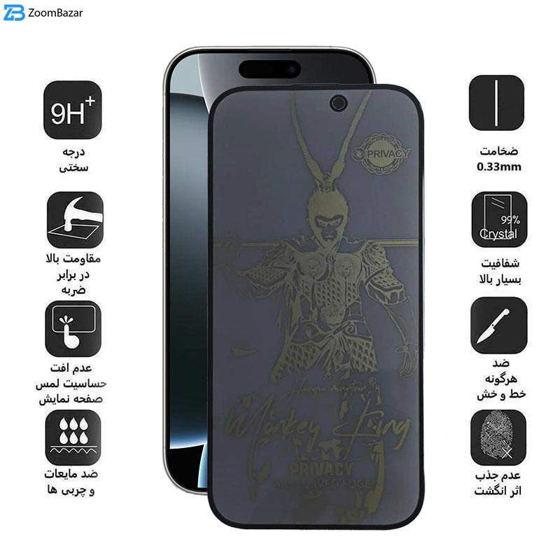 محافظ صفحه نمایش حریم شخصی اپیکوی مدل wukong privacy مناسب برای گوشی موبایل اپل iphone 16 Pro