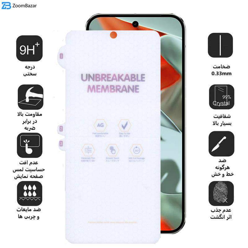 | ویژگیها | 9H، جلوگیری از انعکاس نور، قابلیت نصب آسان، مقاوم در برابر چربی و اثرانگشت، مقاوم در برابر خط و خش، نصب بدون حباب |