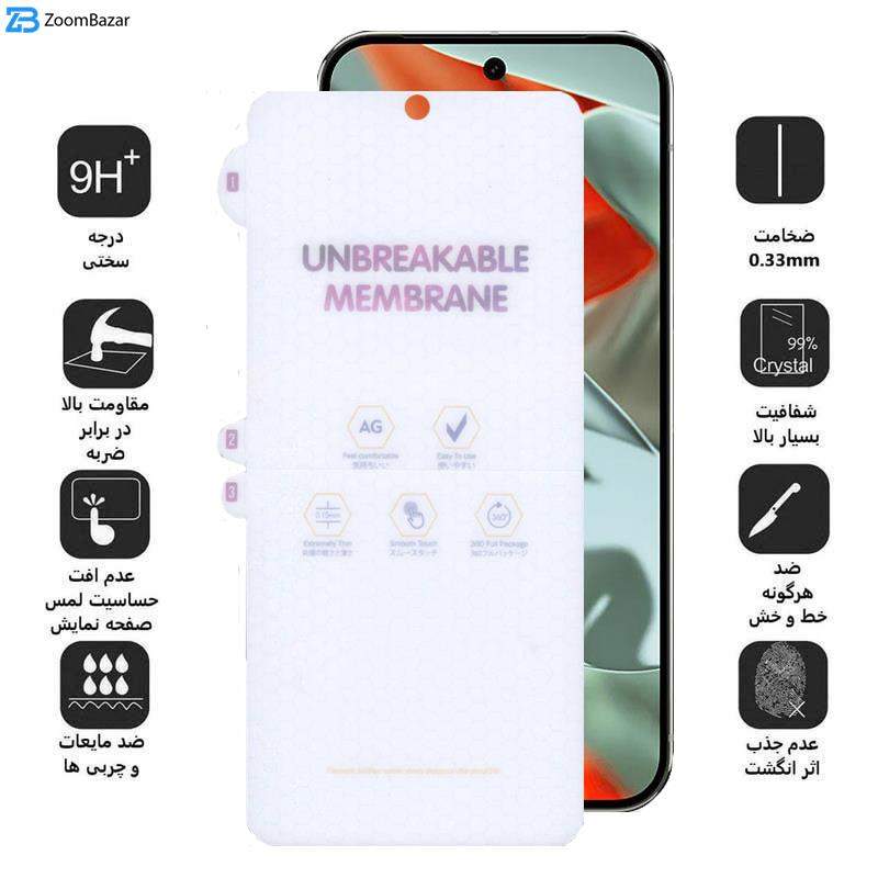 - ویژگیها 9H، جلوگیری از انعکاس نور، قابلیت نصب آسان، مقاوم در برابر خط و خش، نصب بدون حباب، مقاوم در برابر چربی و اثرانگشت