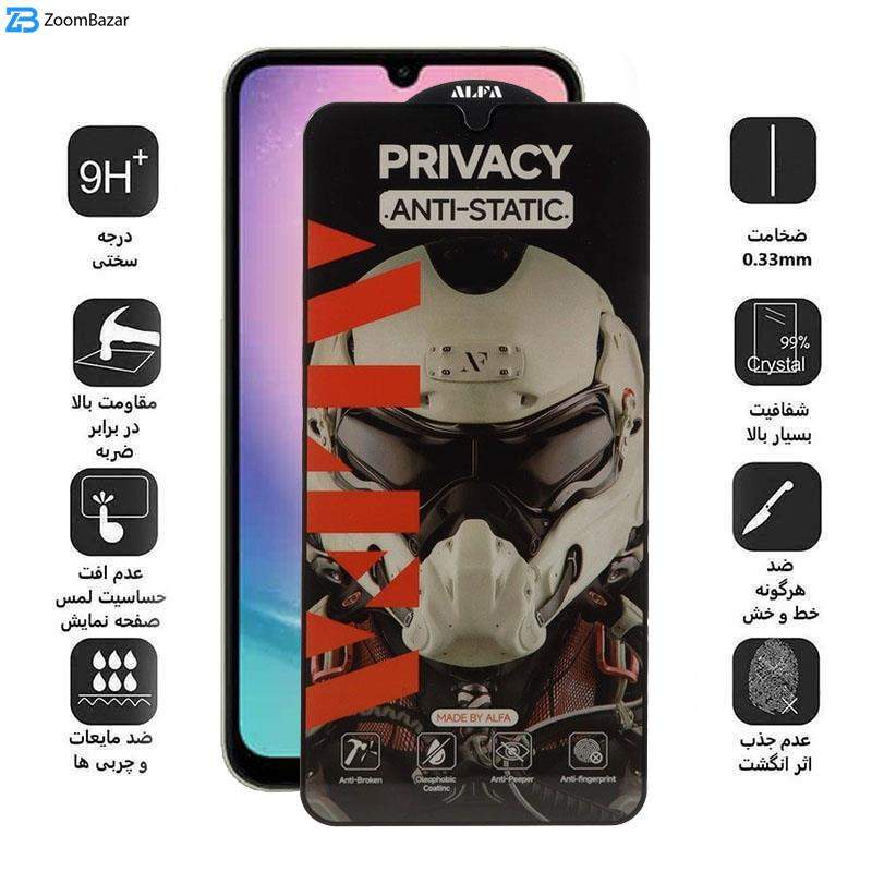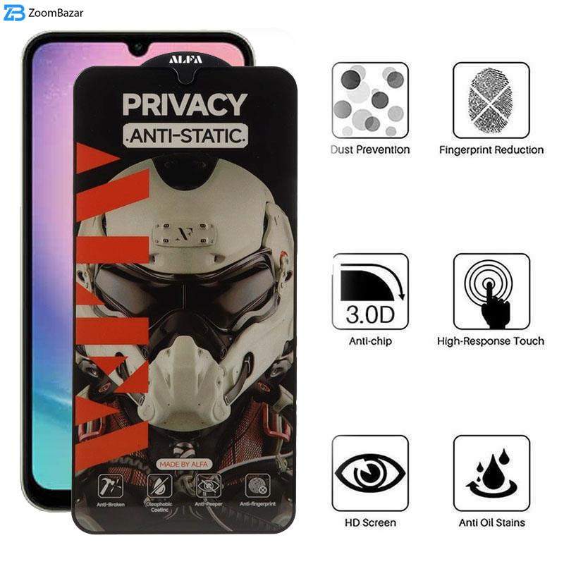 محافظ صفحه نمایش حریم شخصی اپیکوی مدل Alpha مناسب برای گوشی موبایل سامسونگ Galaxy A24/A15/A25/M34/F34